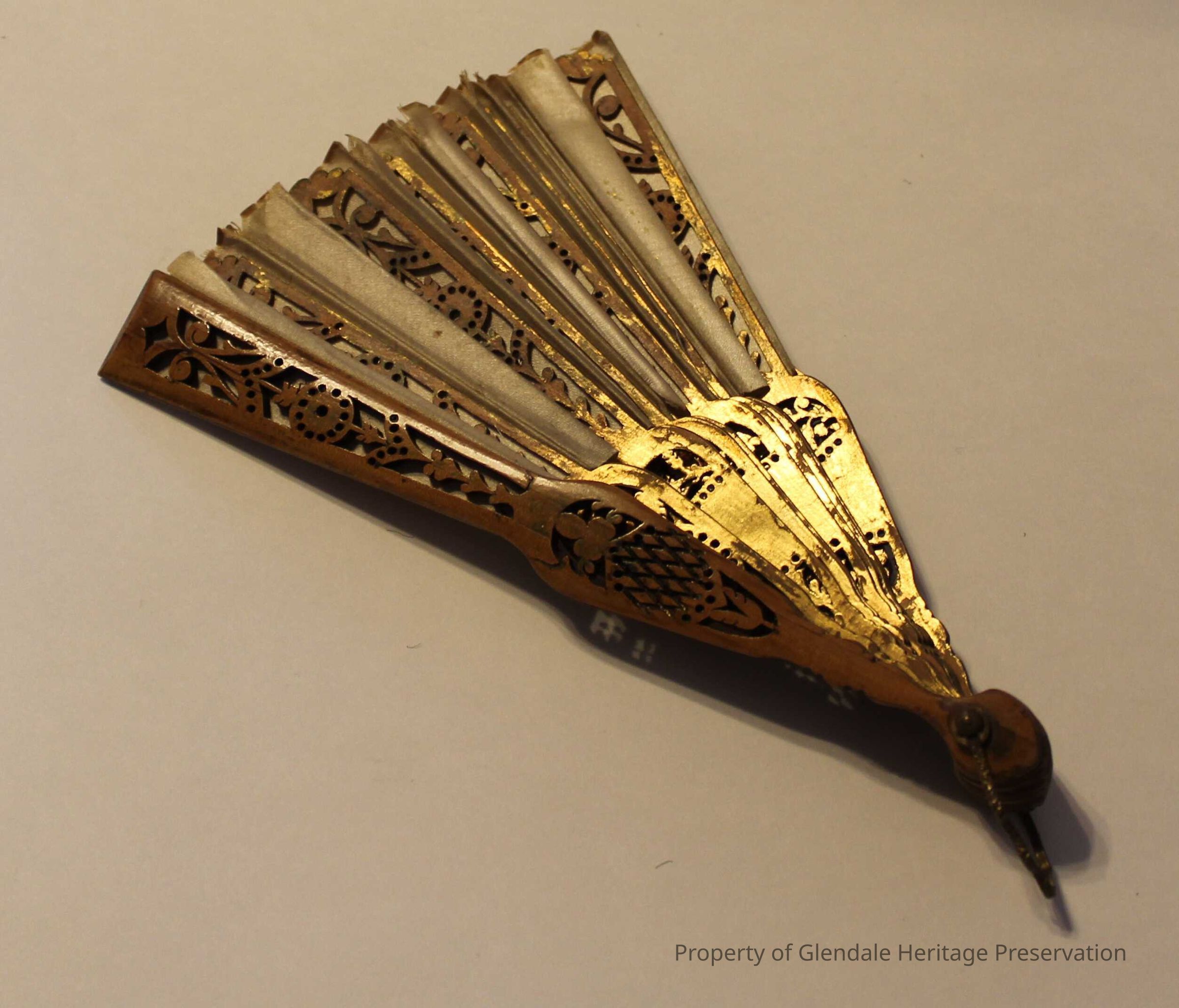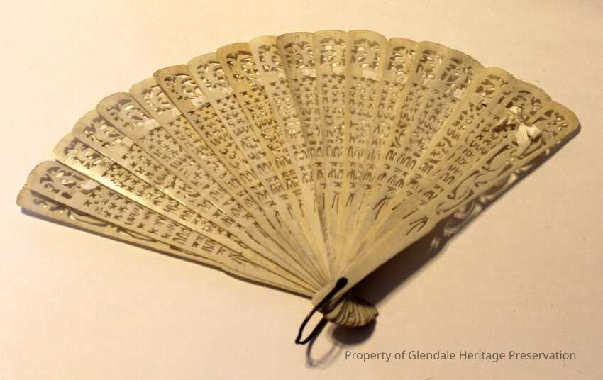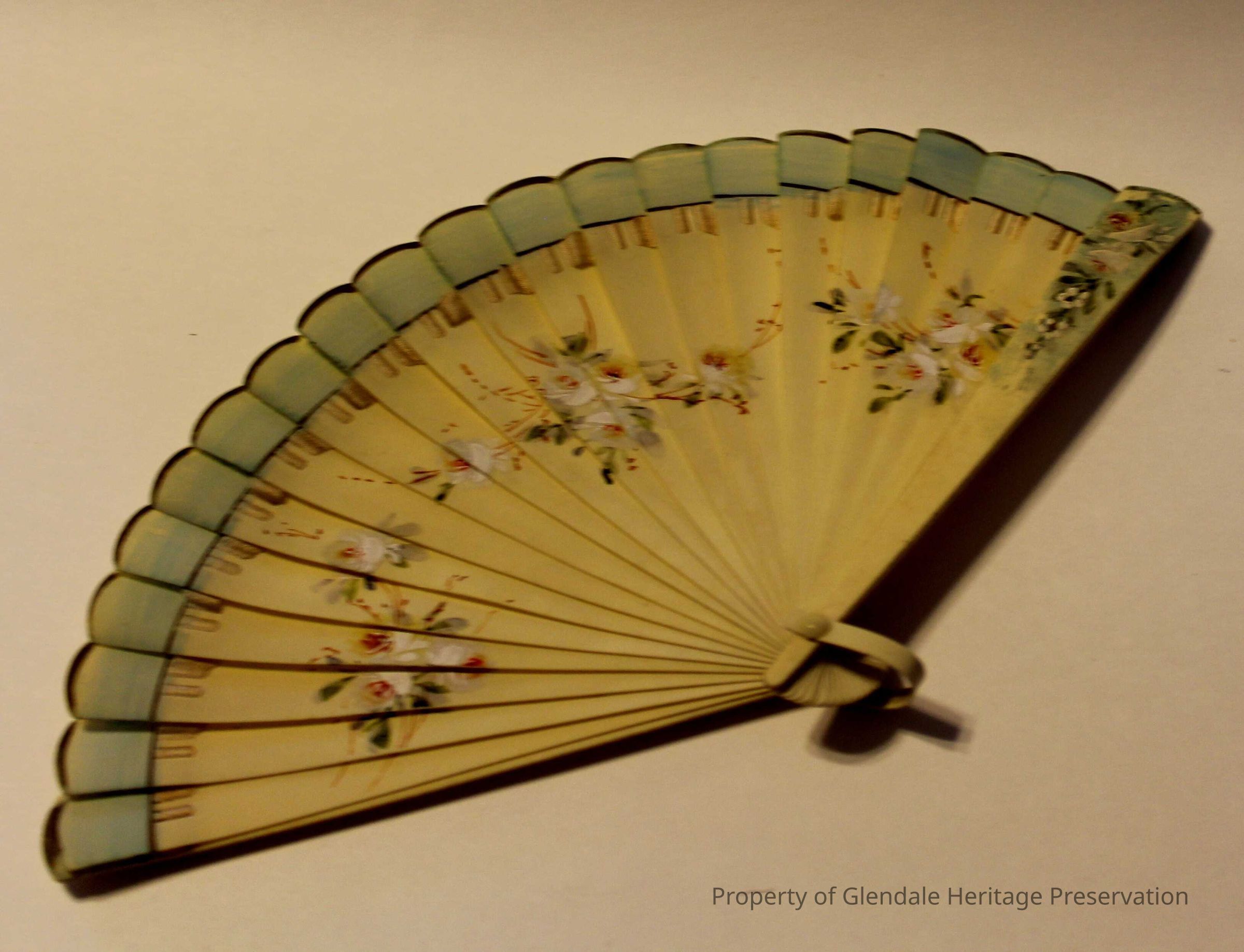 Two Fans c. 1915 of undetermined material which belonged to Minnie A. Ferris, gift of Mrs. Warren Kester