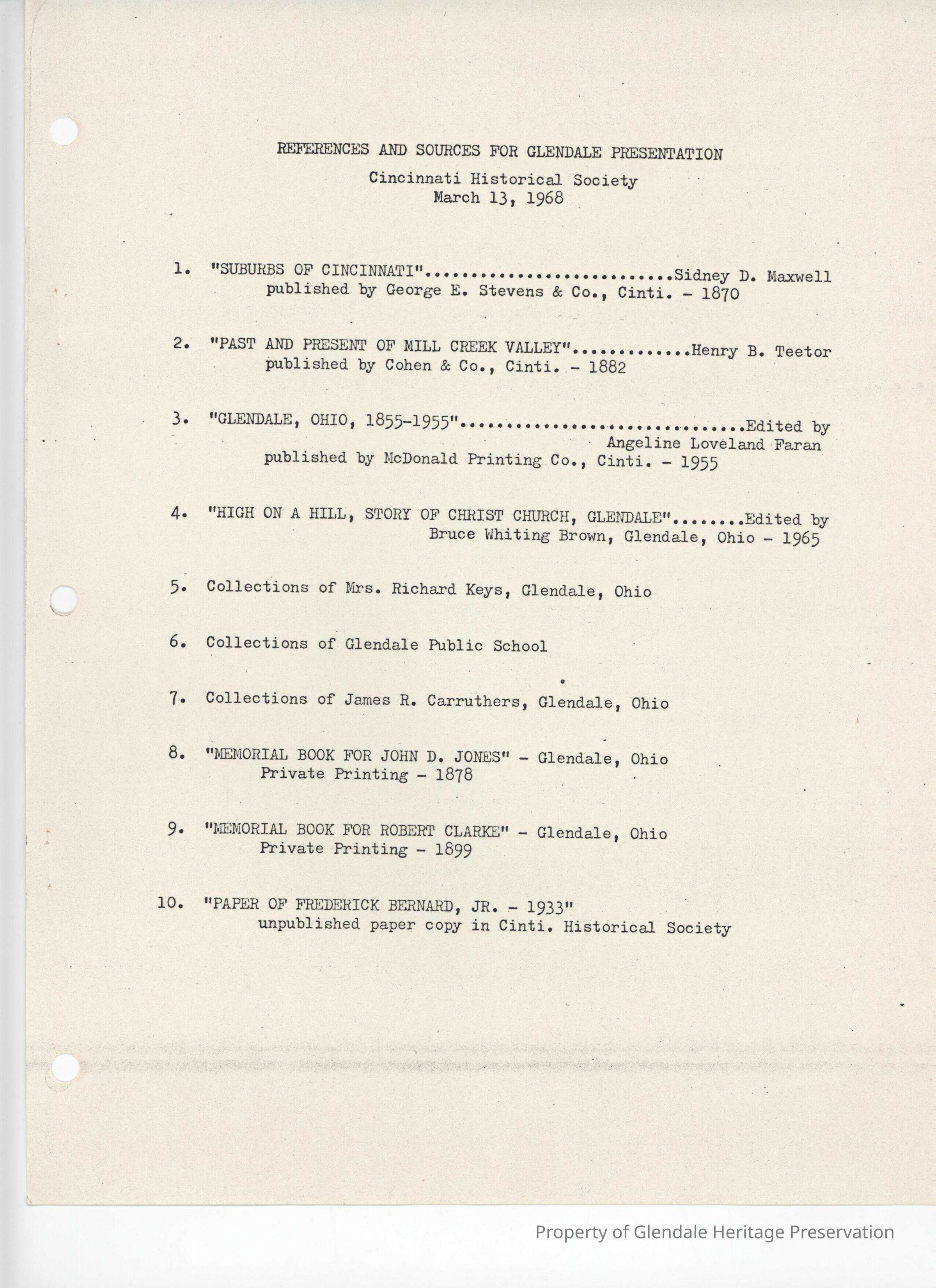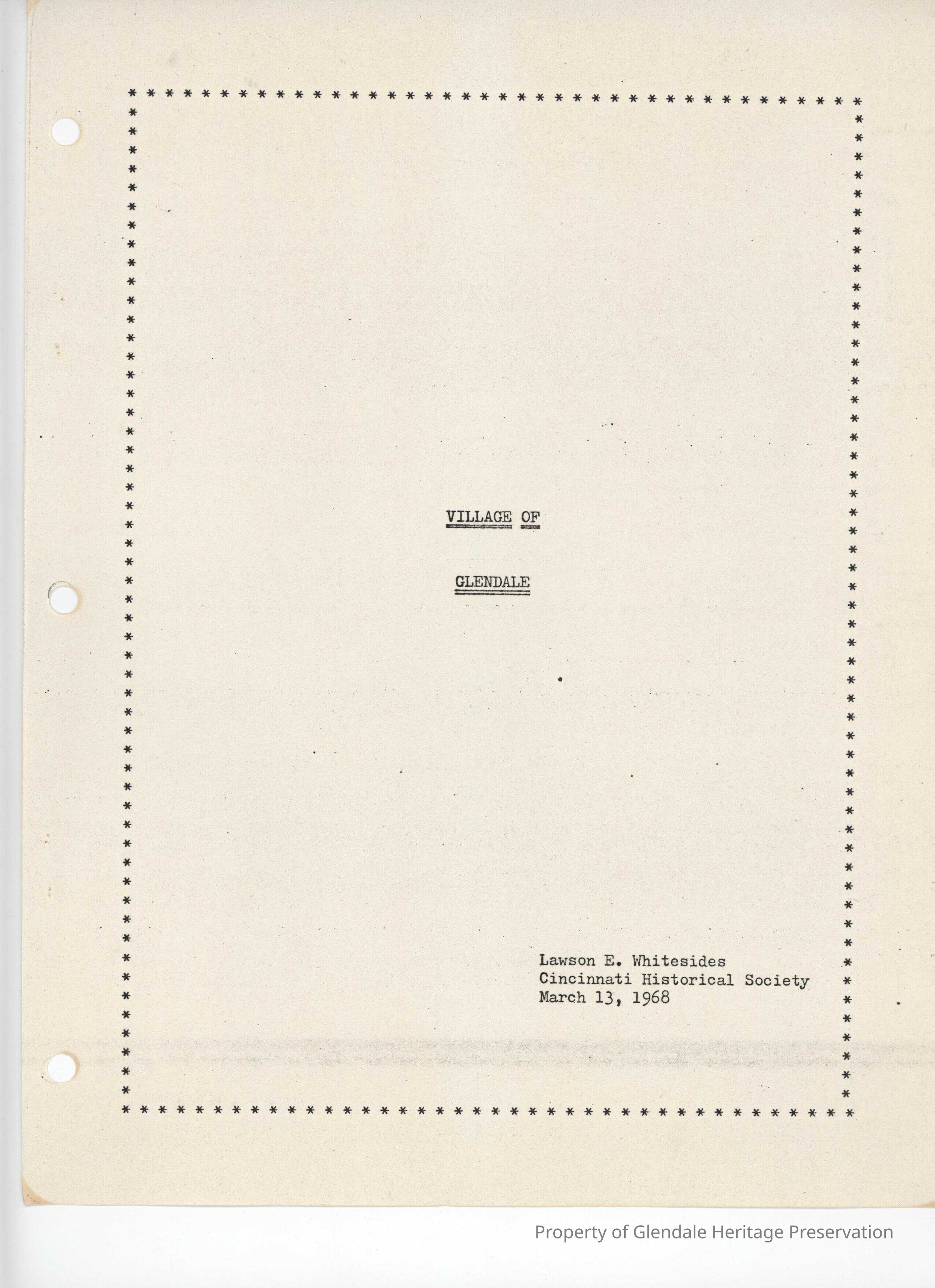 Village of GlendaleEntry/Object ID