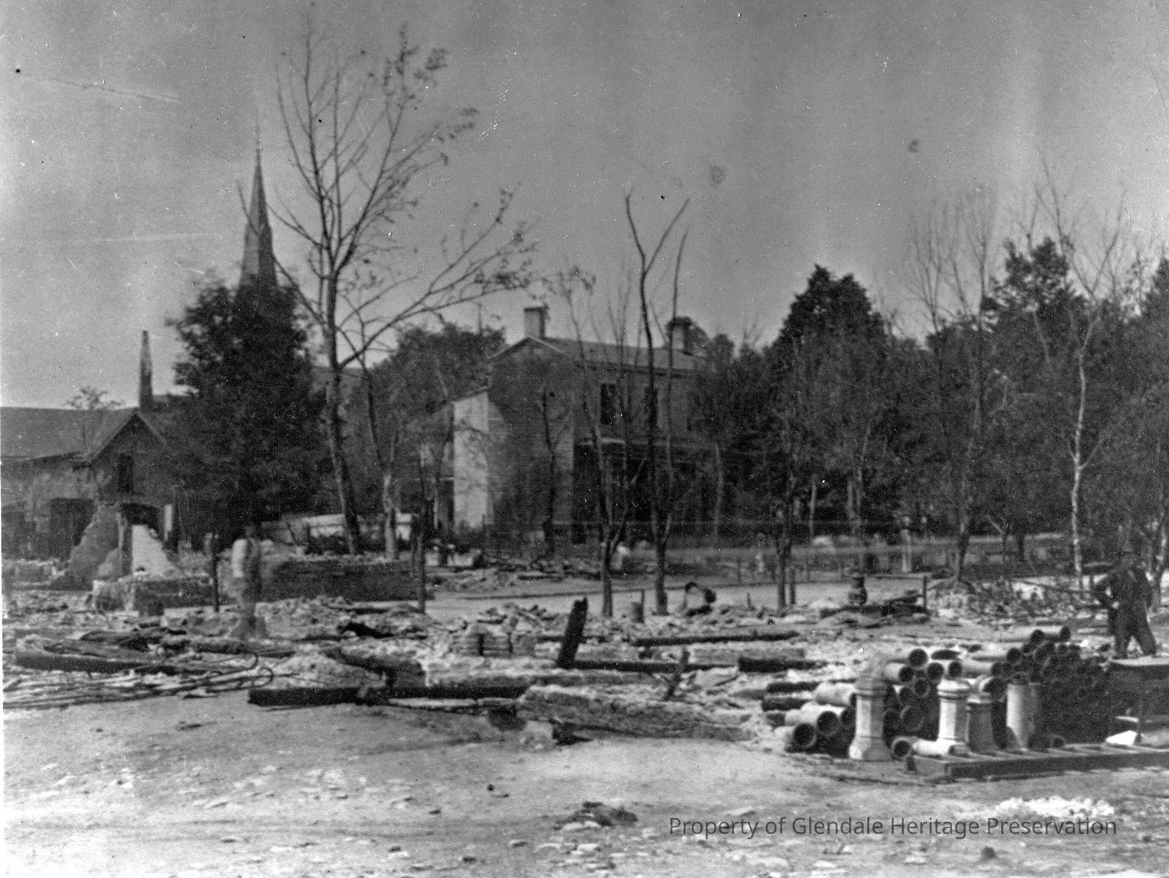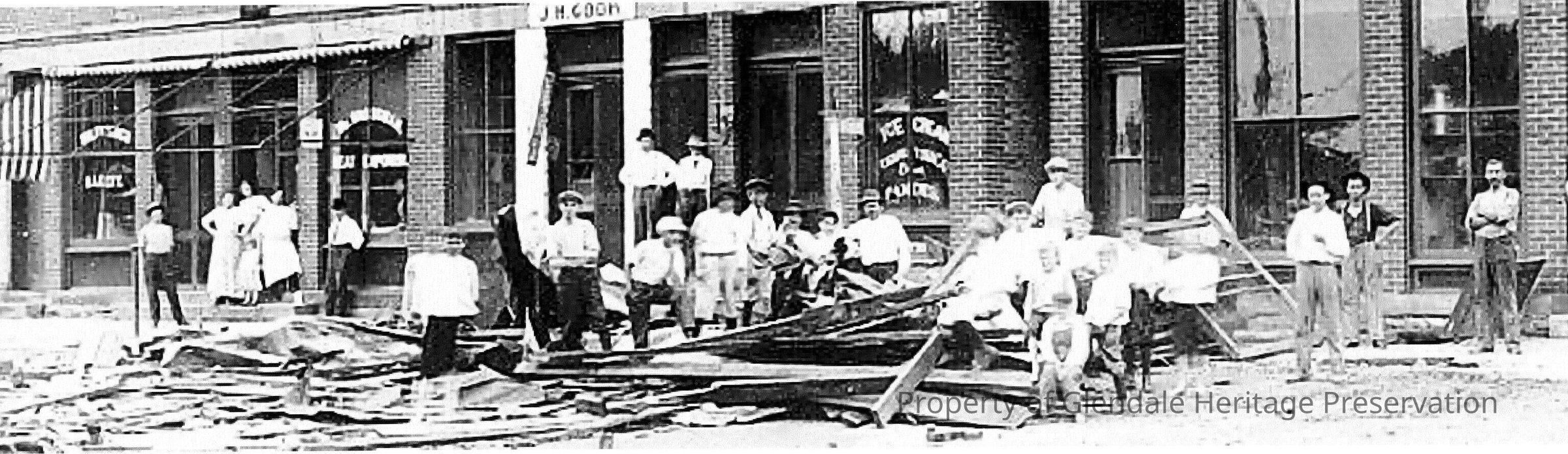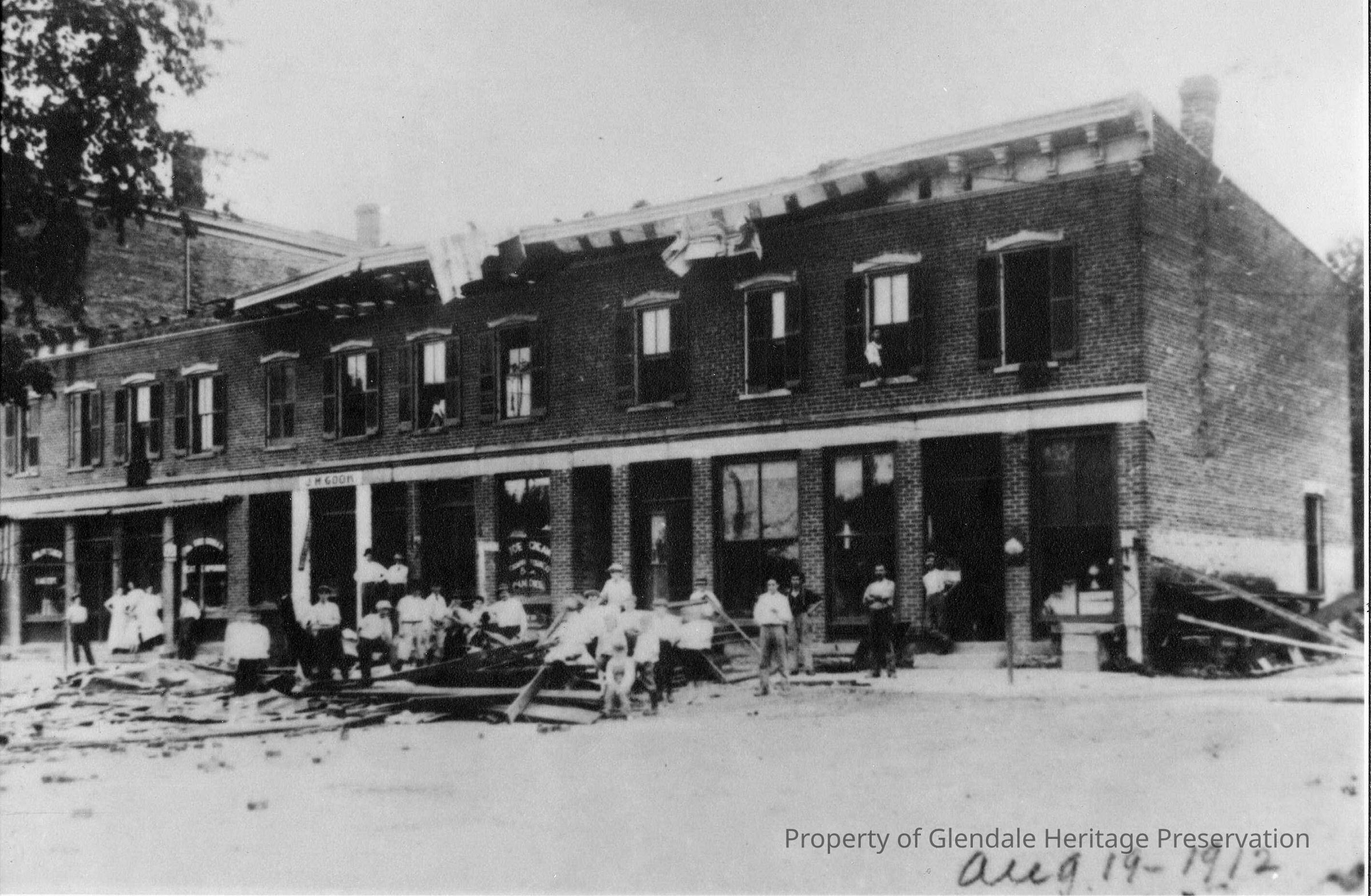 Italianate, Masonic Order, Fire of 1880, 21 Village Square, Pivotal Structure, Glendale Yarn Shop, Tornado of 1912, Igler's Pharmacy, Shoot the Moon Photography, Blue Bird Bakery, Grossman's Meat Markert, Selfstedes Bakery, J. H. Gook's White Cloud Laundry, Businesses