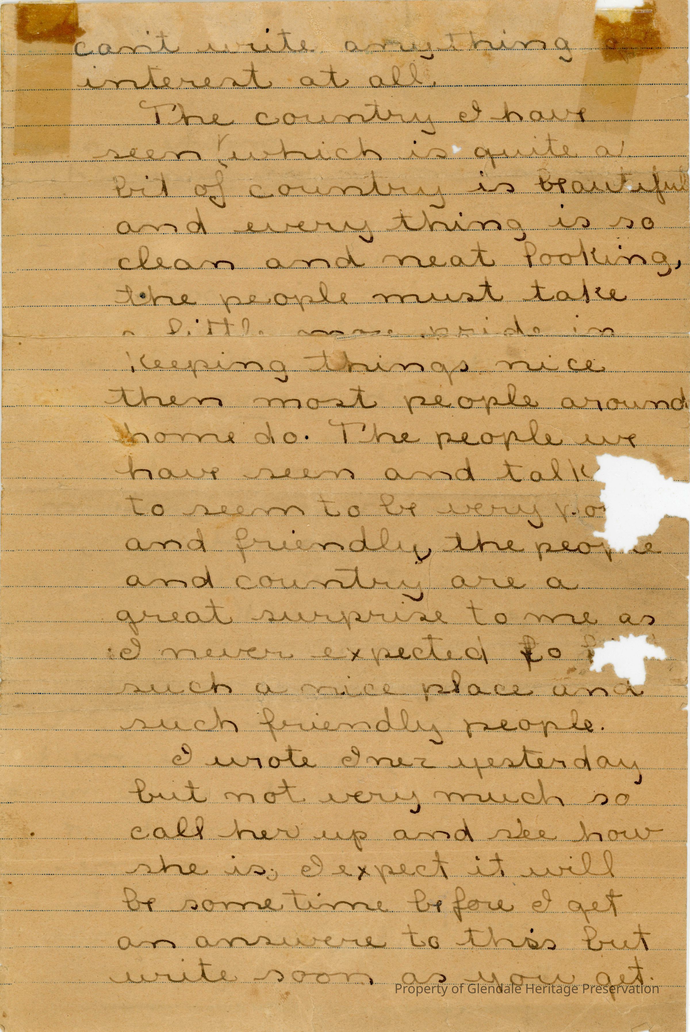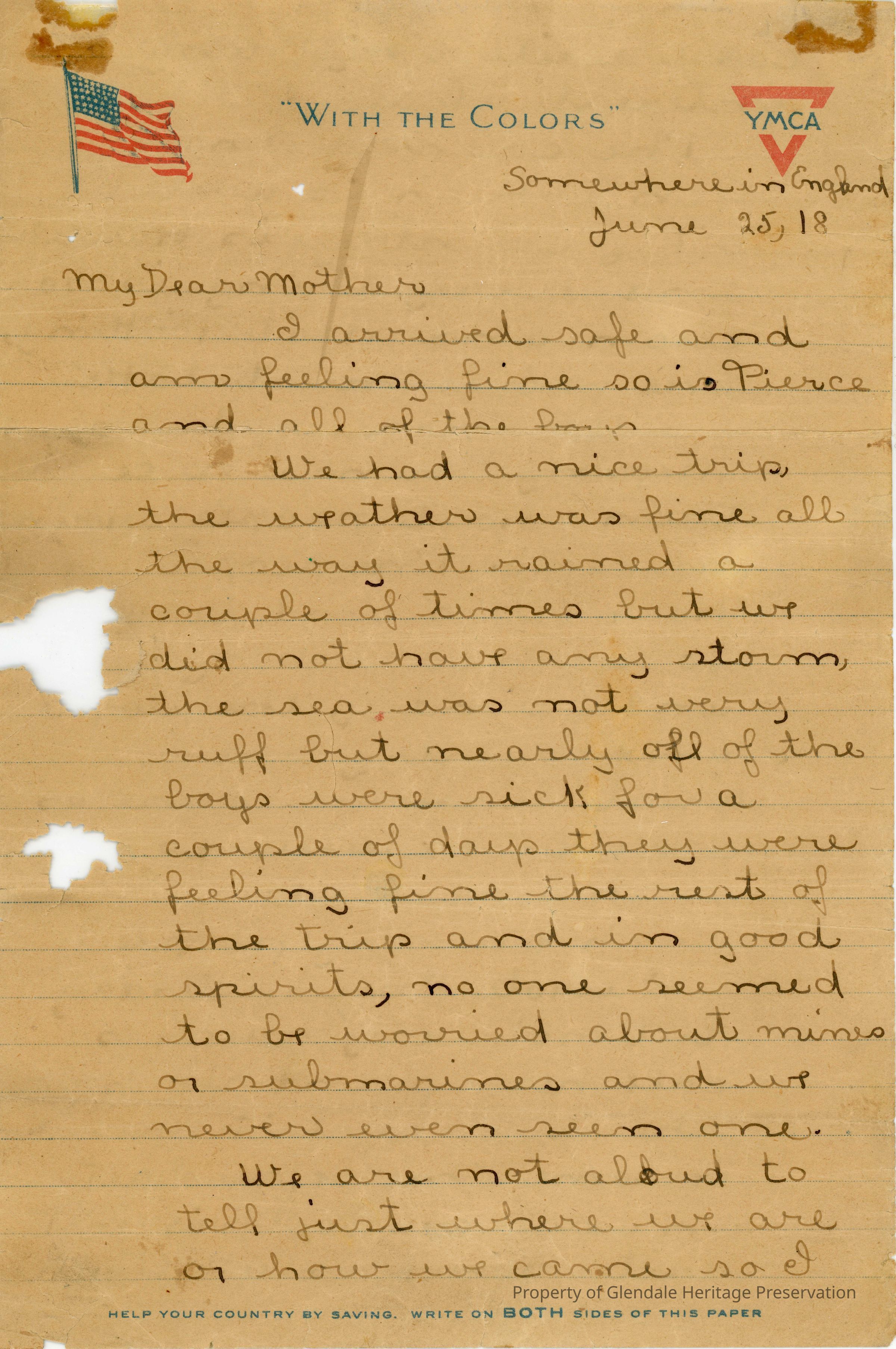 Letter written by Harry Louis Cook to his mother, Emily Bond Hayes Cook.