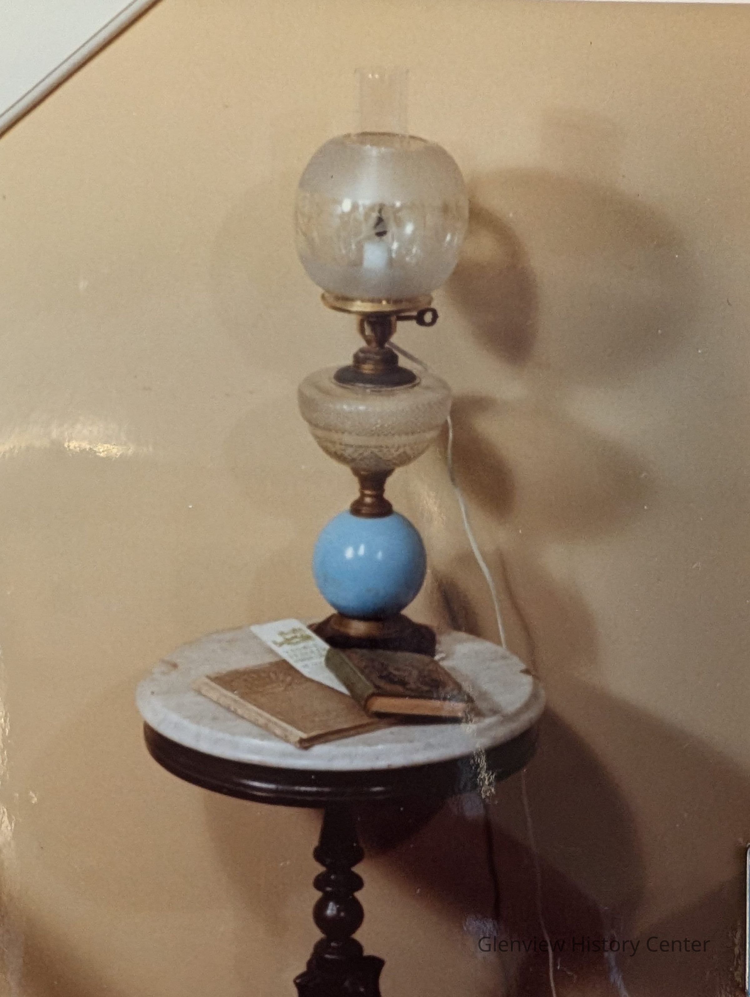 1880 blue bulb, etched bowl and brass holdings. Wired for electricity