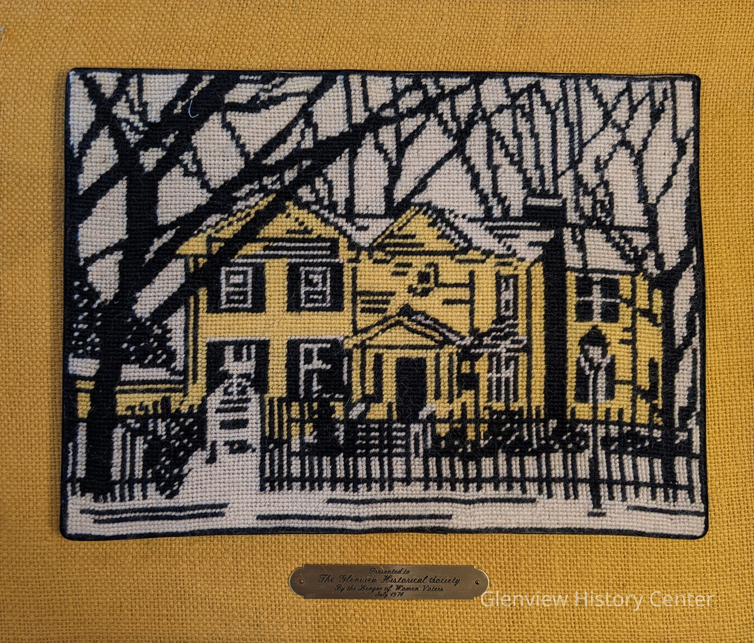 Needlepoint picture of the Glenview Area Historical SocietyContext