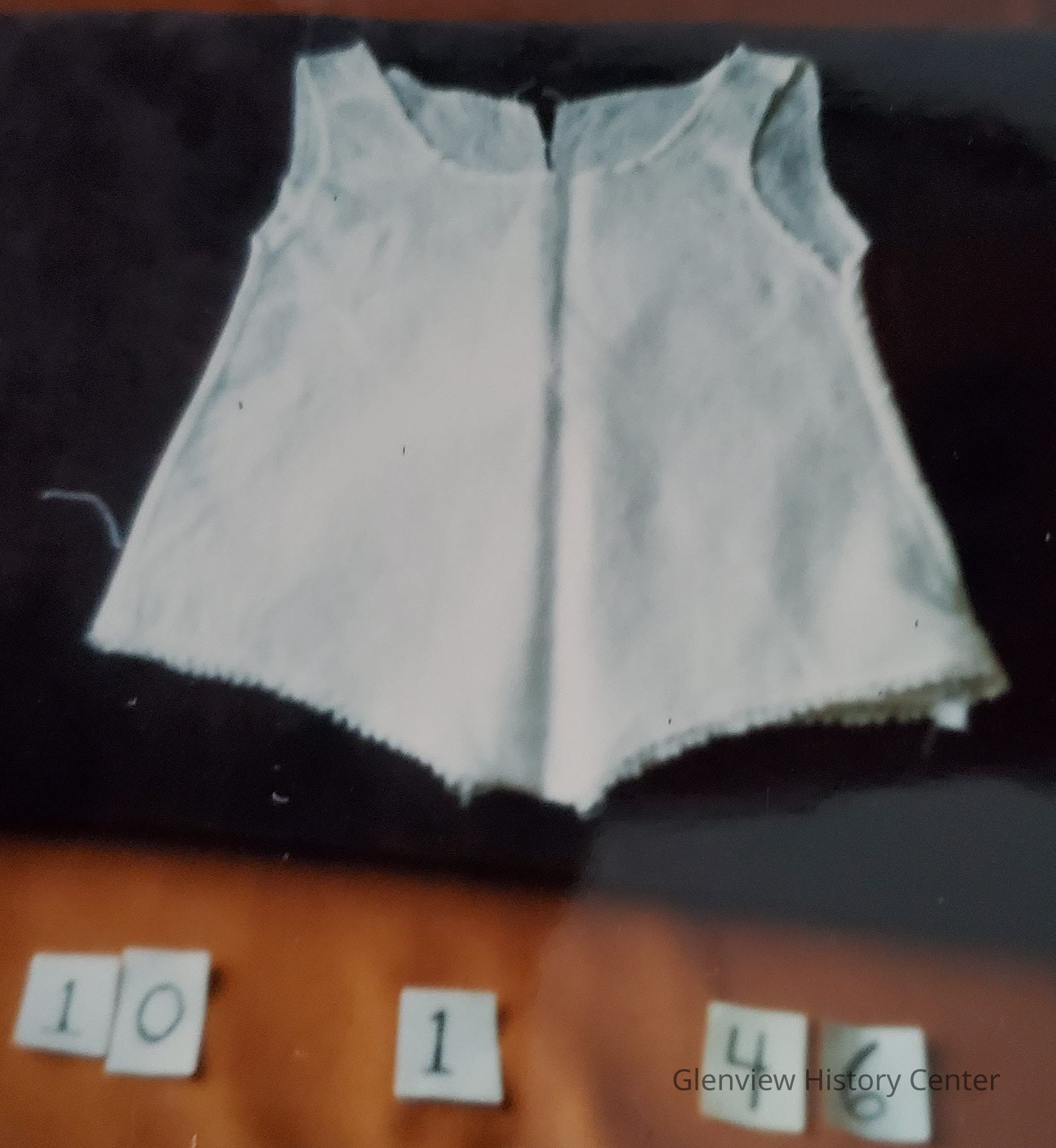 White cotton baby doll Teddy-T shirt style top; wide leggen opening - narrow lace tatted trim.