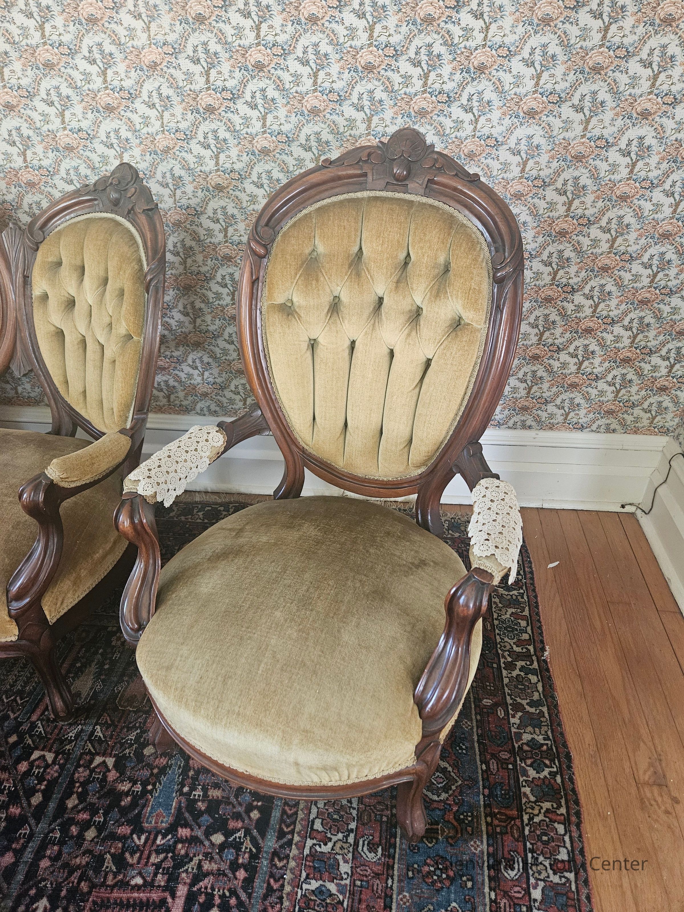 Three piece parlor set: Settee with three sections Armchair Side chair
