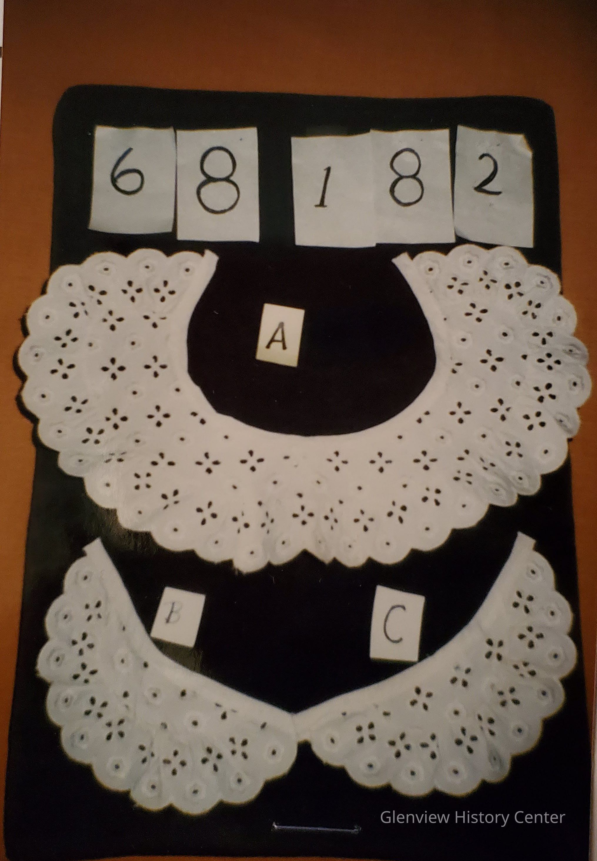 Collar and 2 cuffs. White eyelet, cotton ribbed material.