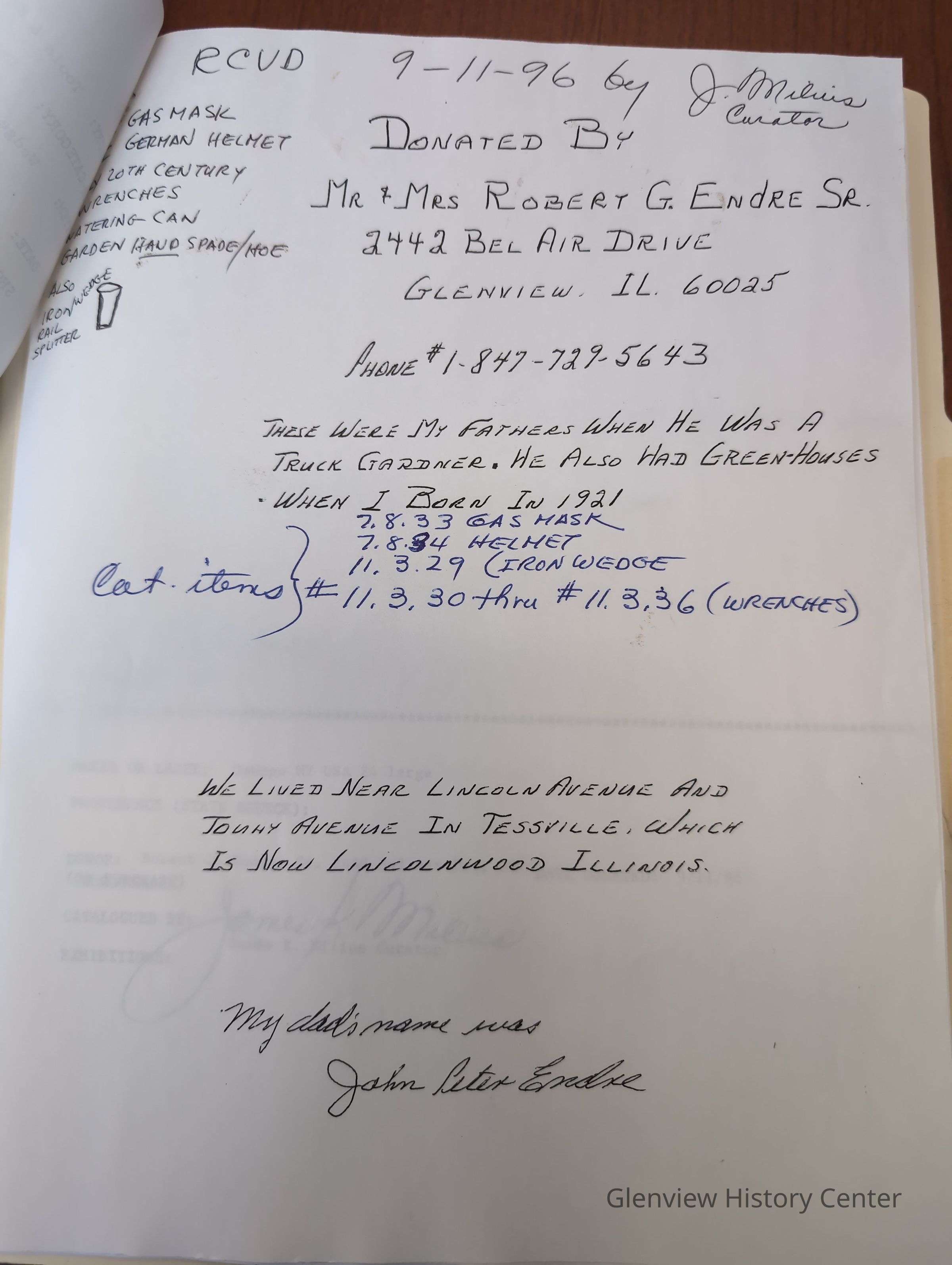 Donated by Robt. G. Endre, Sr. on 9/11/1996