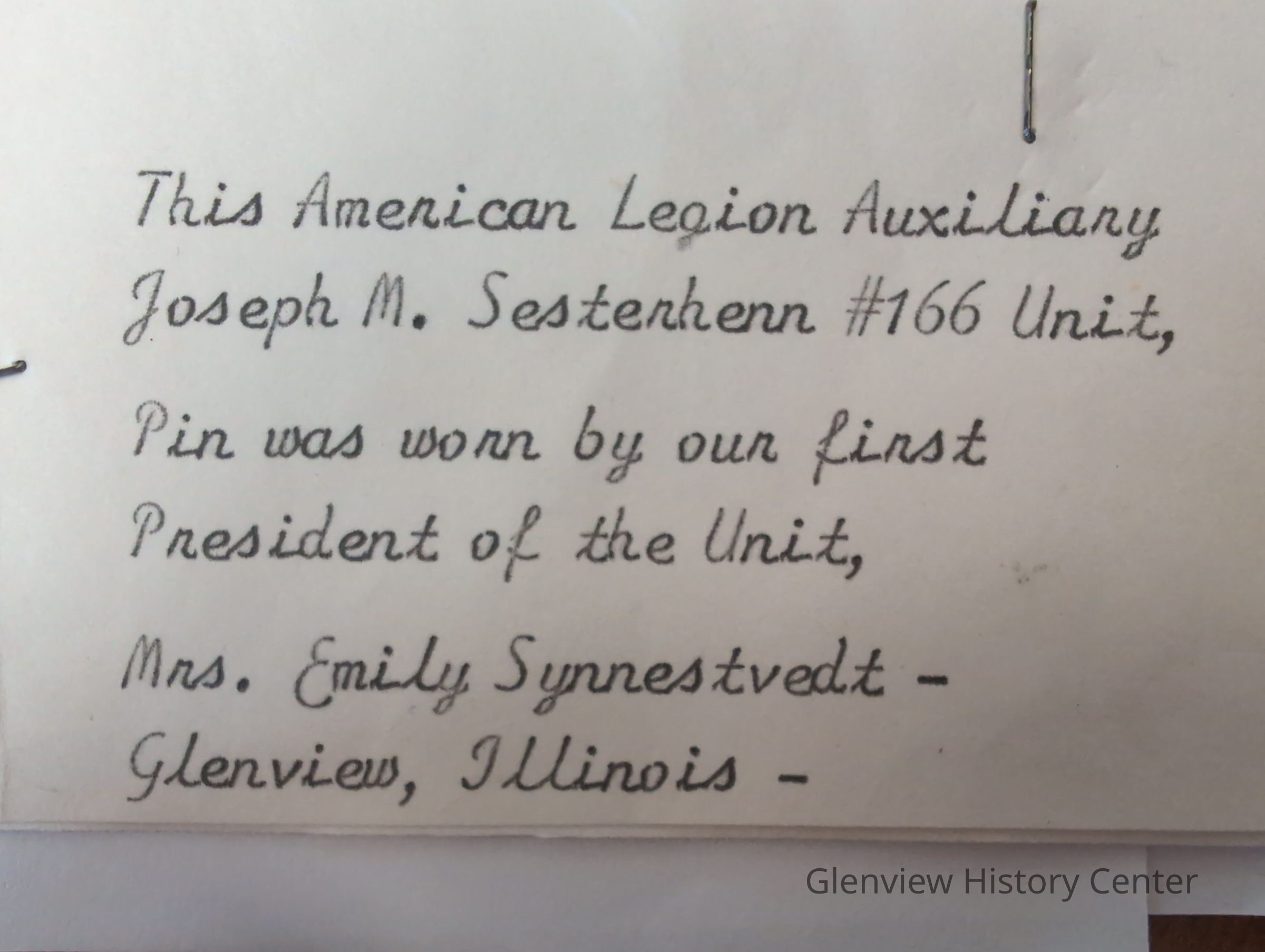 Worn by the first American Legion Auxiliary Joseph M. Sesterhenn #166 Unit President, Emily SynnestvedtAcquisition