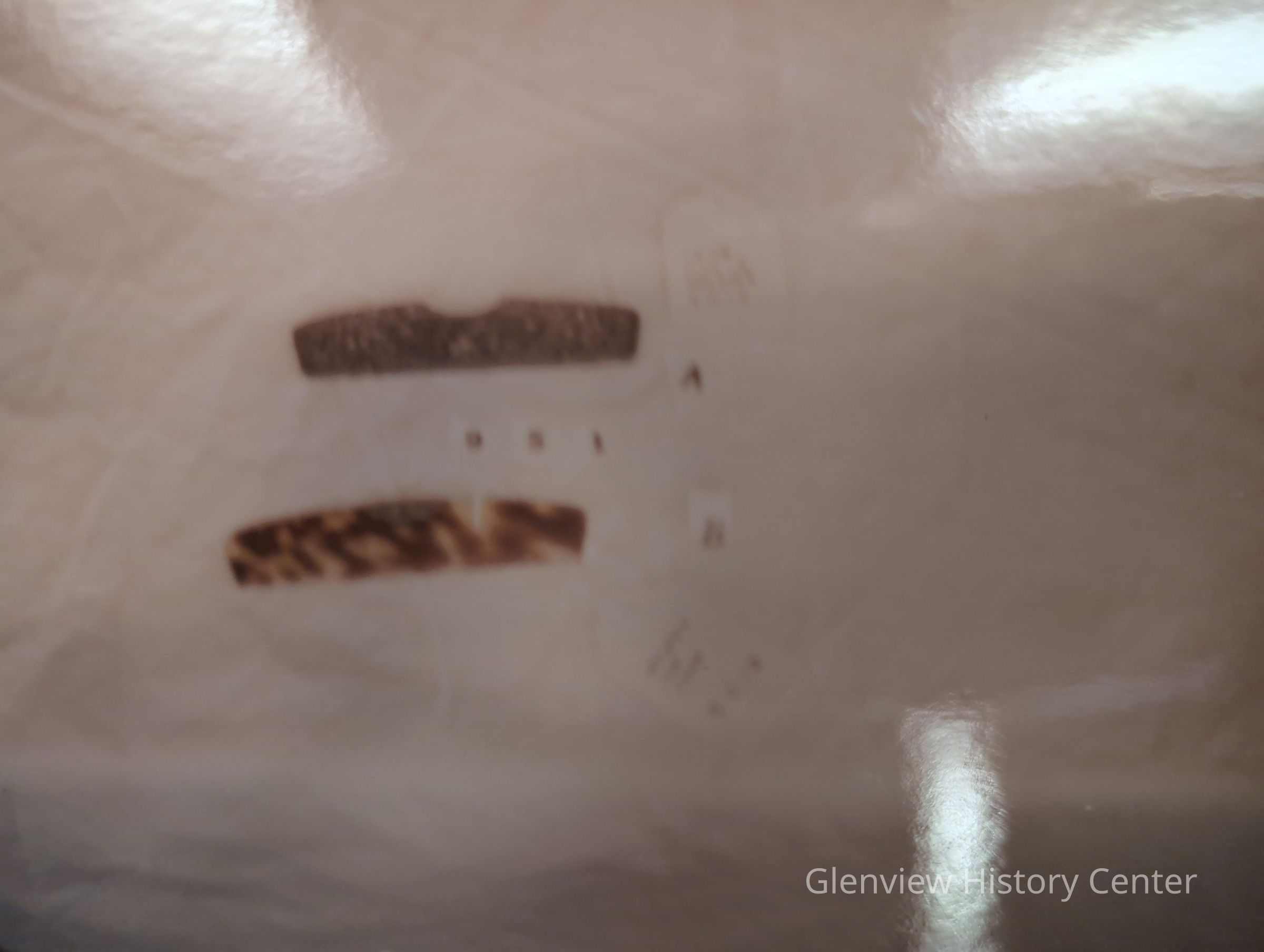 Comb in holster, circa 1900 - mottled brown and yellow, capped at the enter with silver grip, fan shaped, holster has relief decoration on two sides, at center is a scene of four figures including a fiddler, relief design of flowers and foliage surrounds the center scene