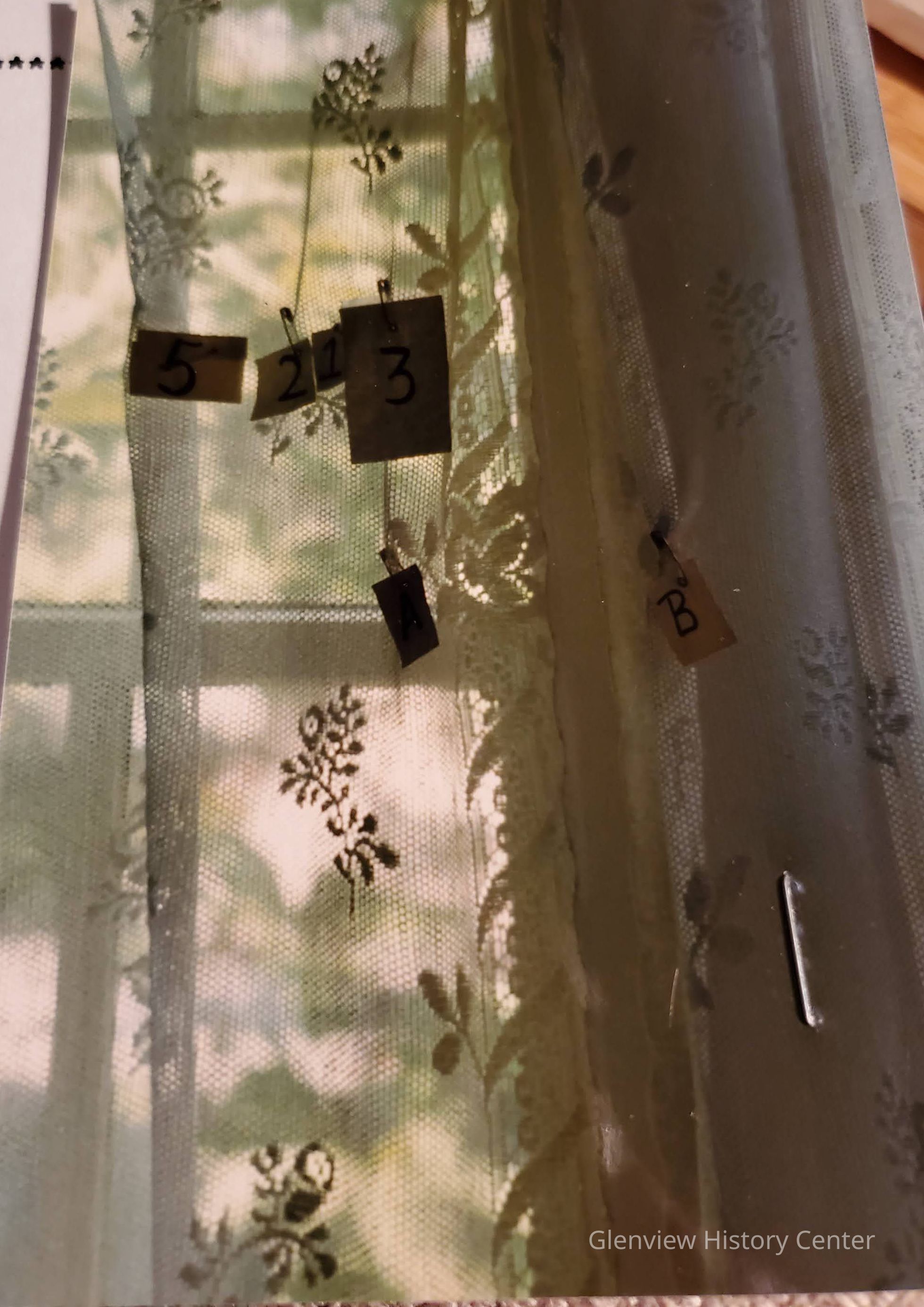 Flowered white lace curtains, 52-1/2" x 62-1/2"