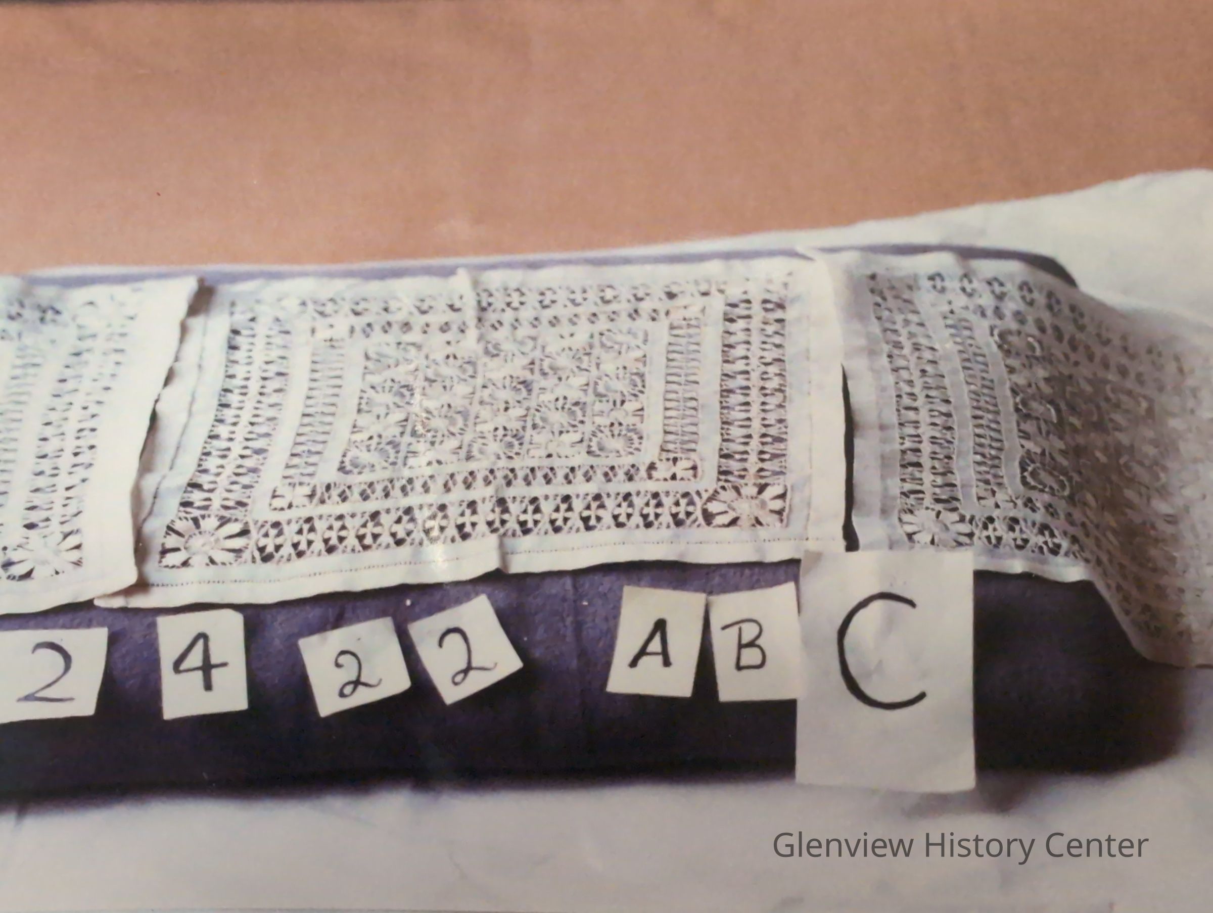 3 doilies; 9" square linen trim with lacy drawn-work dates late 1800's to early 1900's bobbin lace