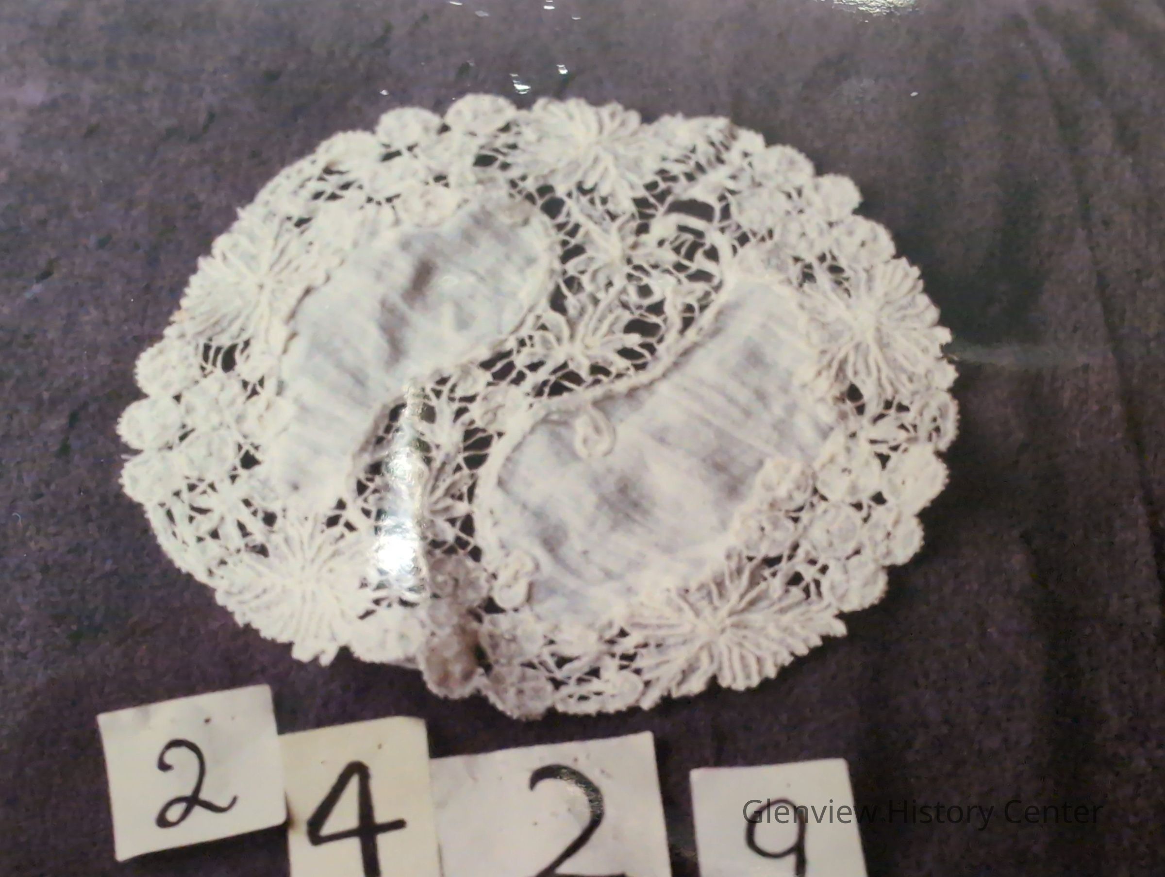 1 small (51/2") round doily; sheer linen; decorative lace; white;