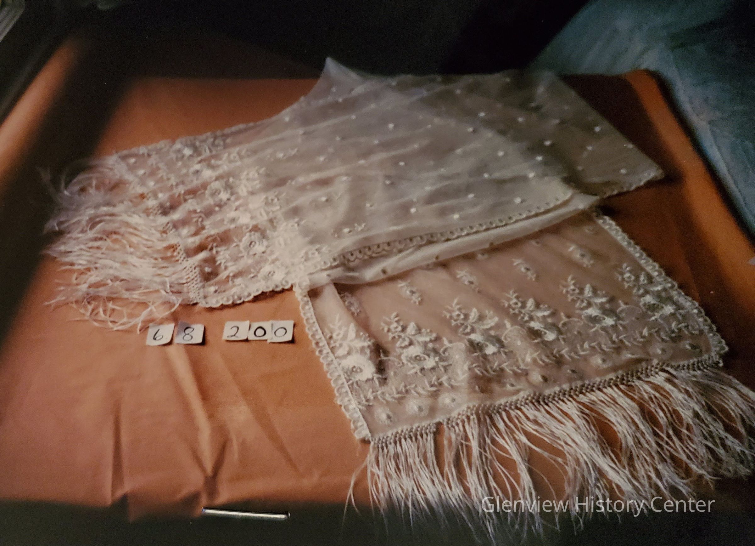 Six satin stitched flowers at each end and leaves are satin stitched.