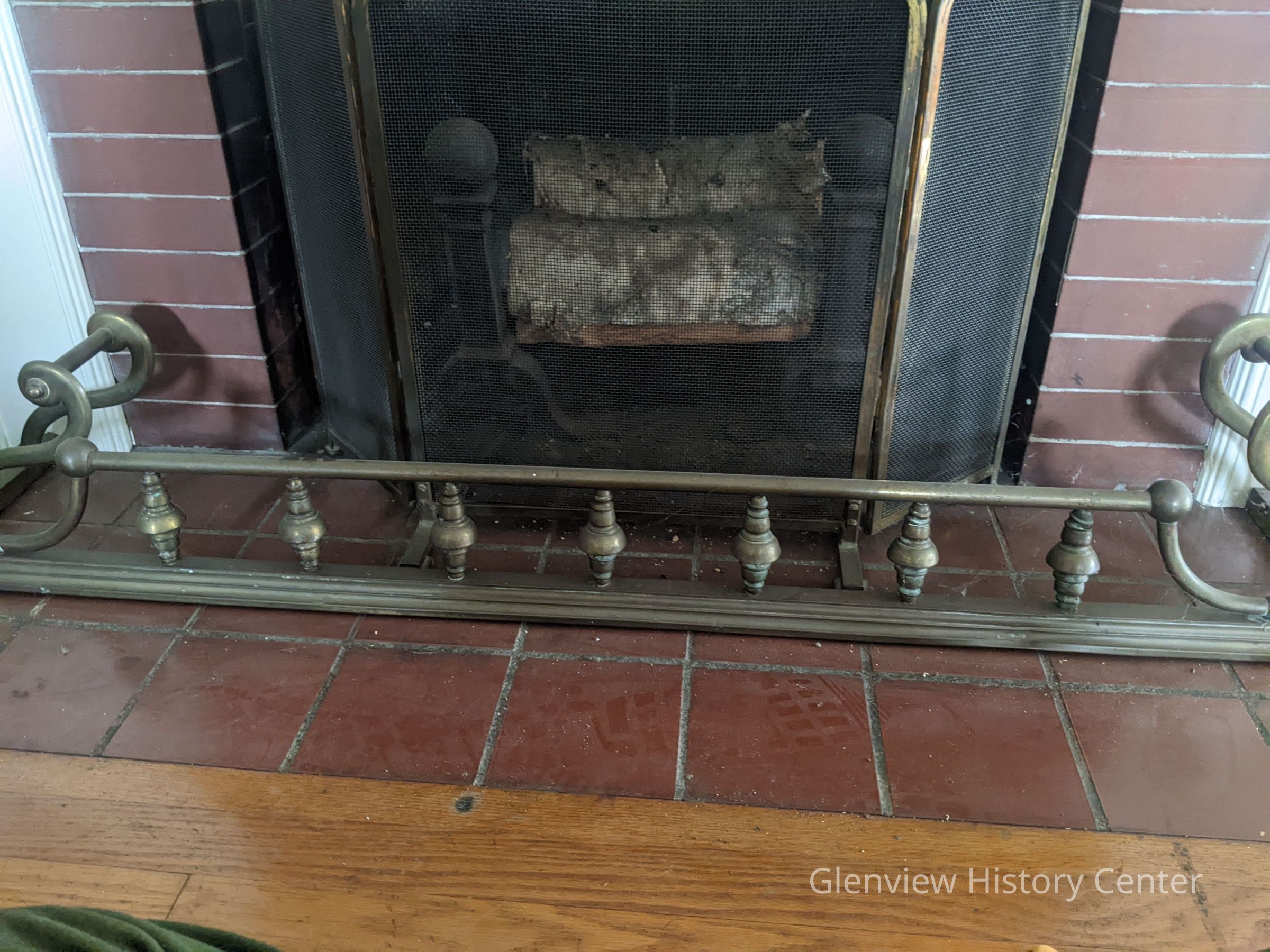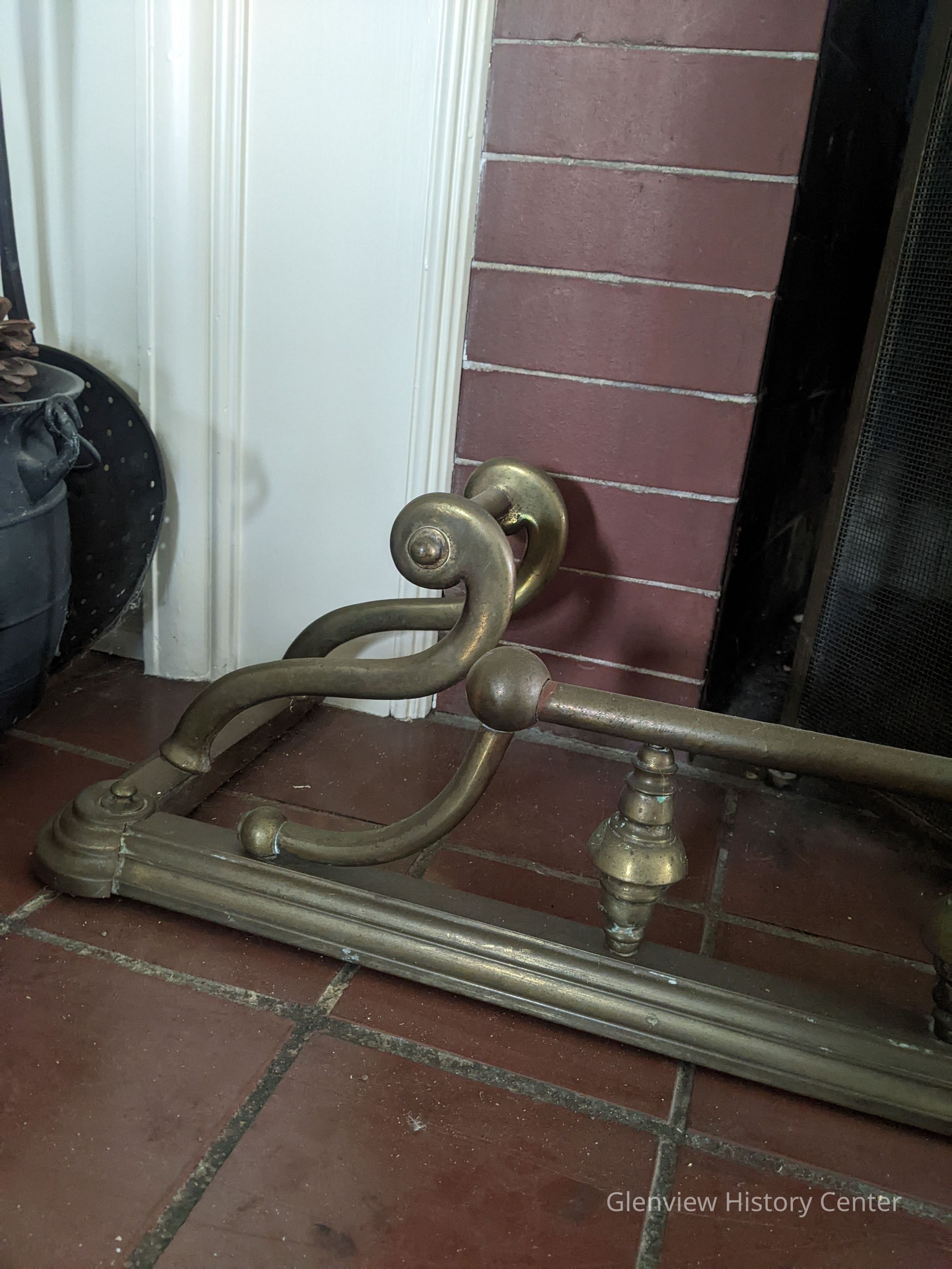 Fireplace Fender -- brass-- from Mrs. M.D.R. Riddell, is from Mr. Riddel's grandfather's home.
