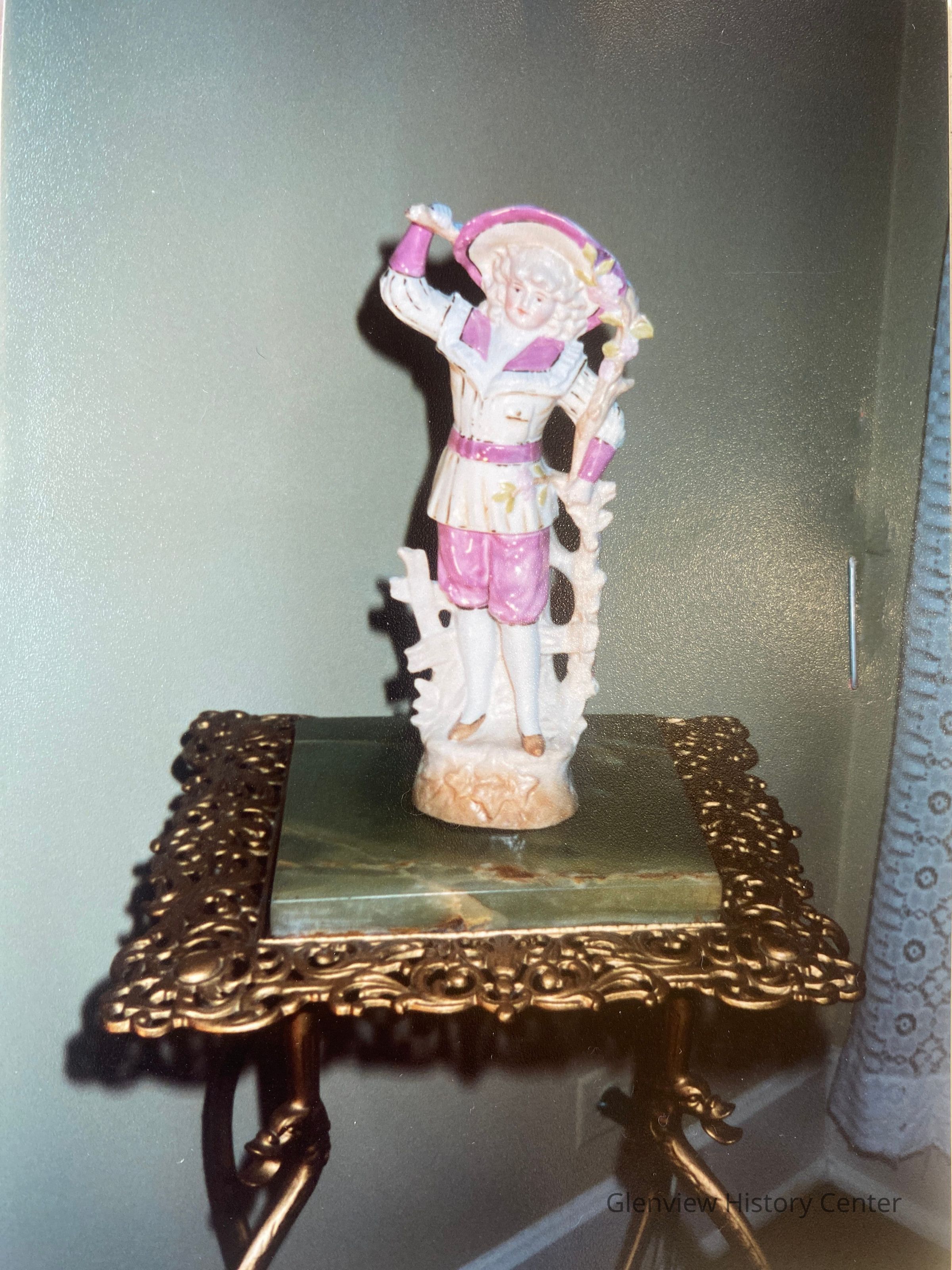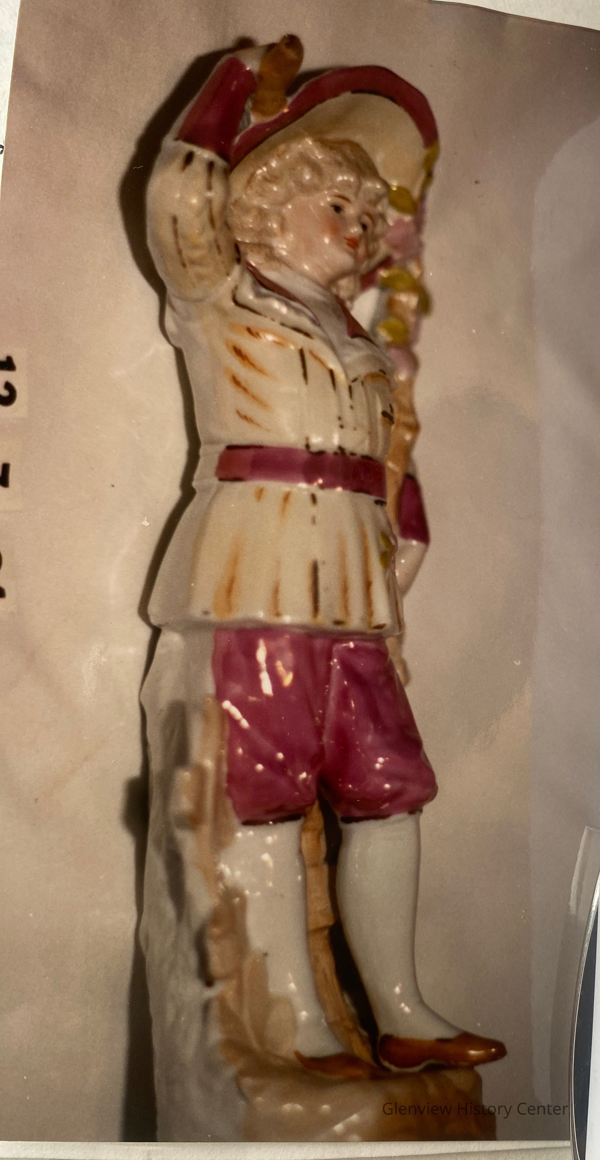 Figure of a standing boy, by a tree and fence, the base with ivy or grape leaves in a relief