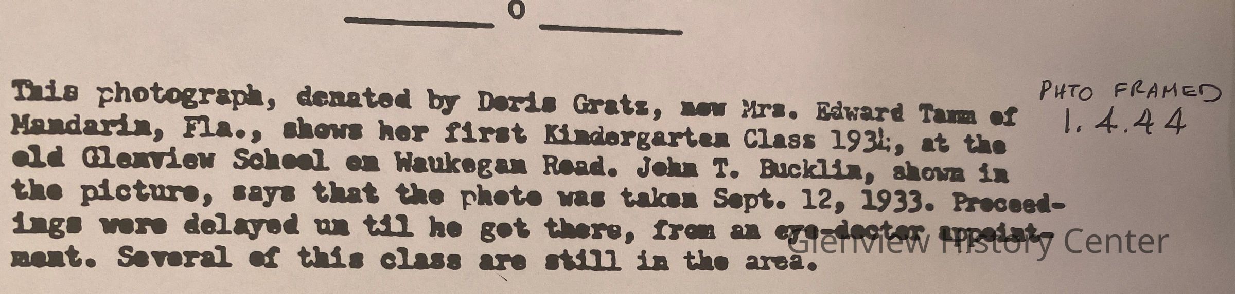 Framed Photograph of Glenview School Kindergarten ClassDescription