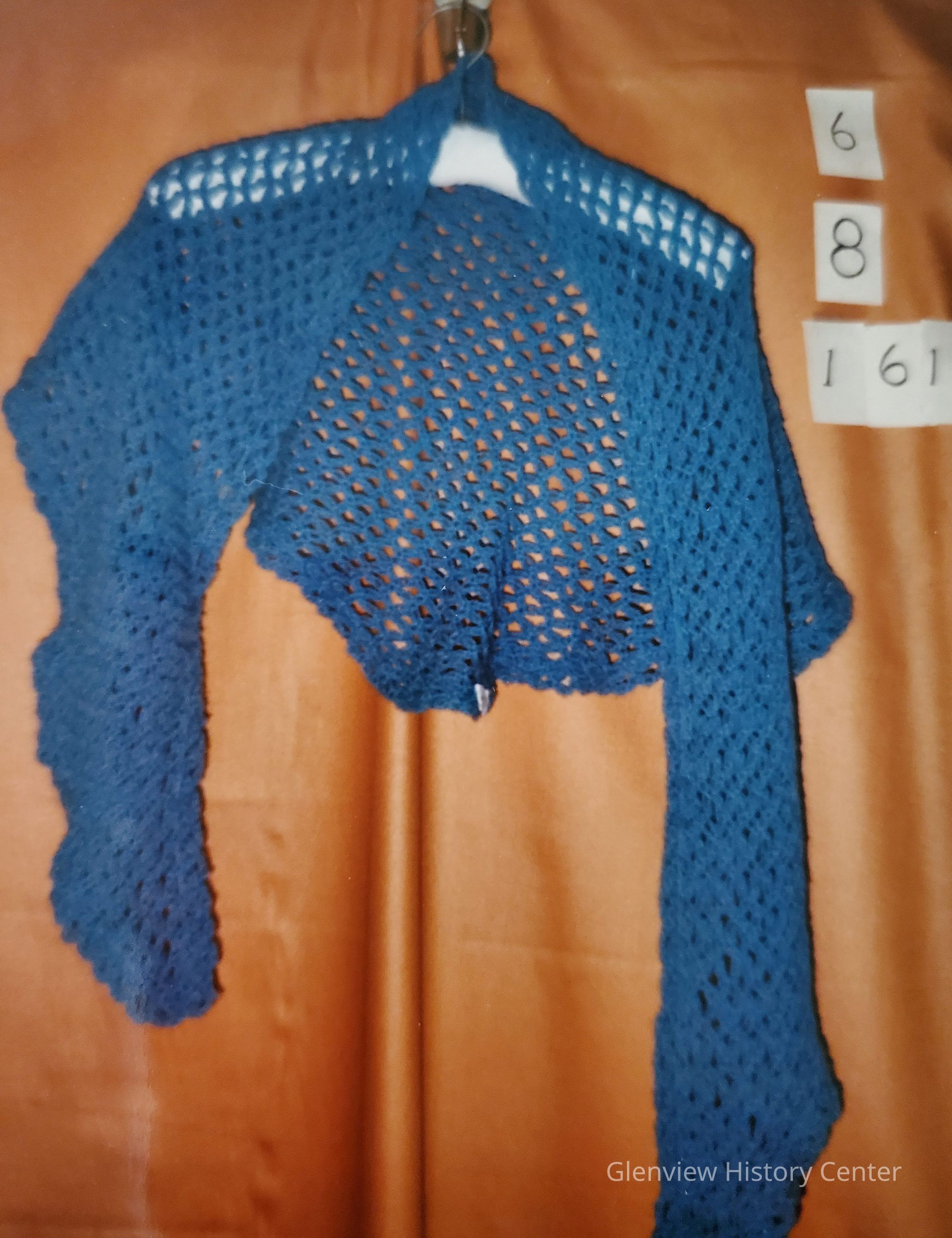 Hand knit/crocheted blue scarf - Triangular.