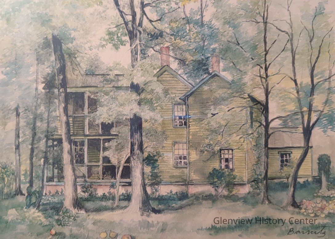 Watercolor of the Hutching's Farmhouse painted around 1917 by Myrtle BarnitzAcquisition