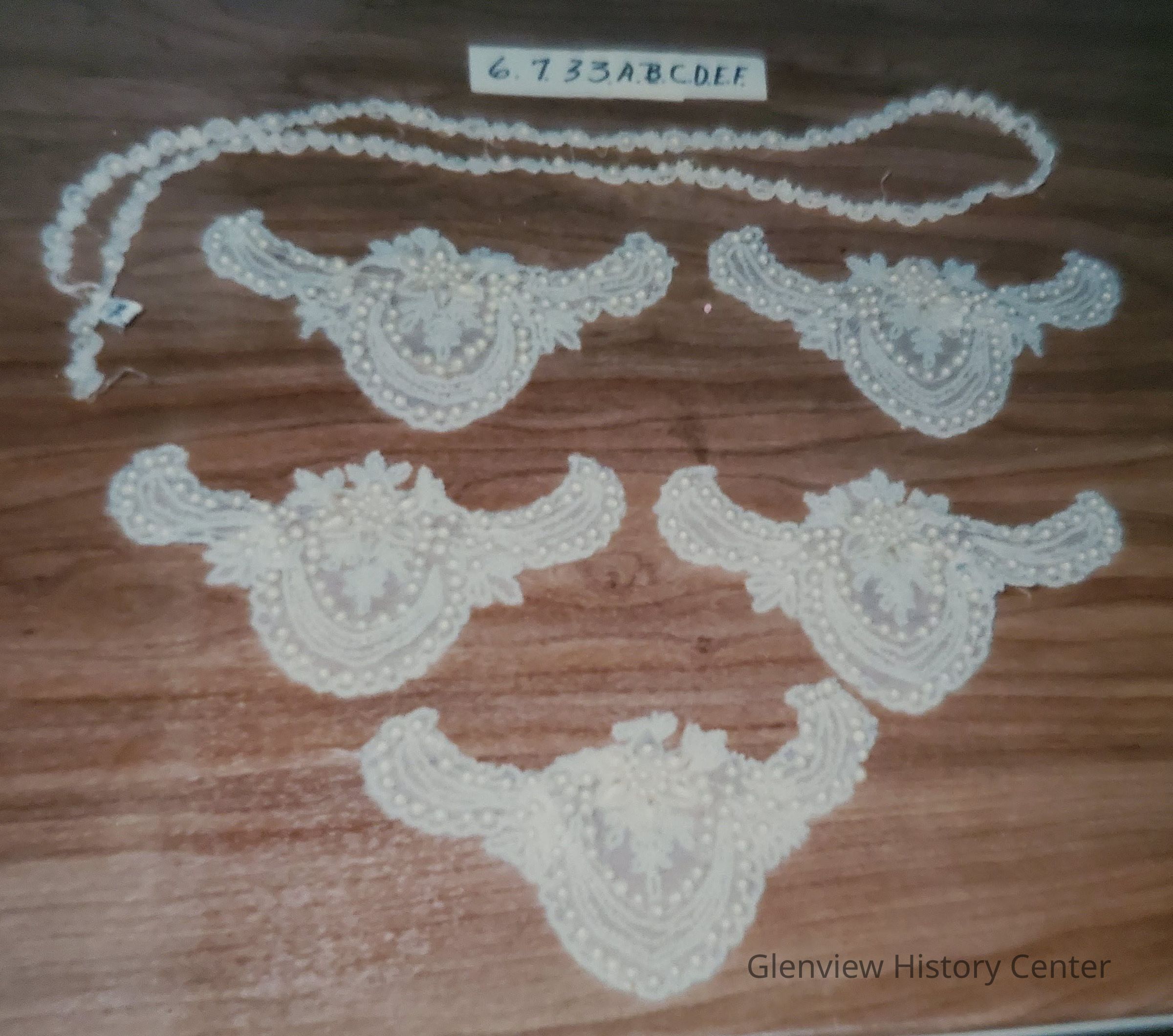 Hand sewn beads and lace from the wedding dress of Juanita Gertrude Rankin who married Howard A. Parker on 10-12-1912 in Albuquerque, New Mexico