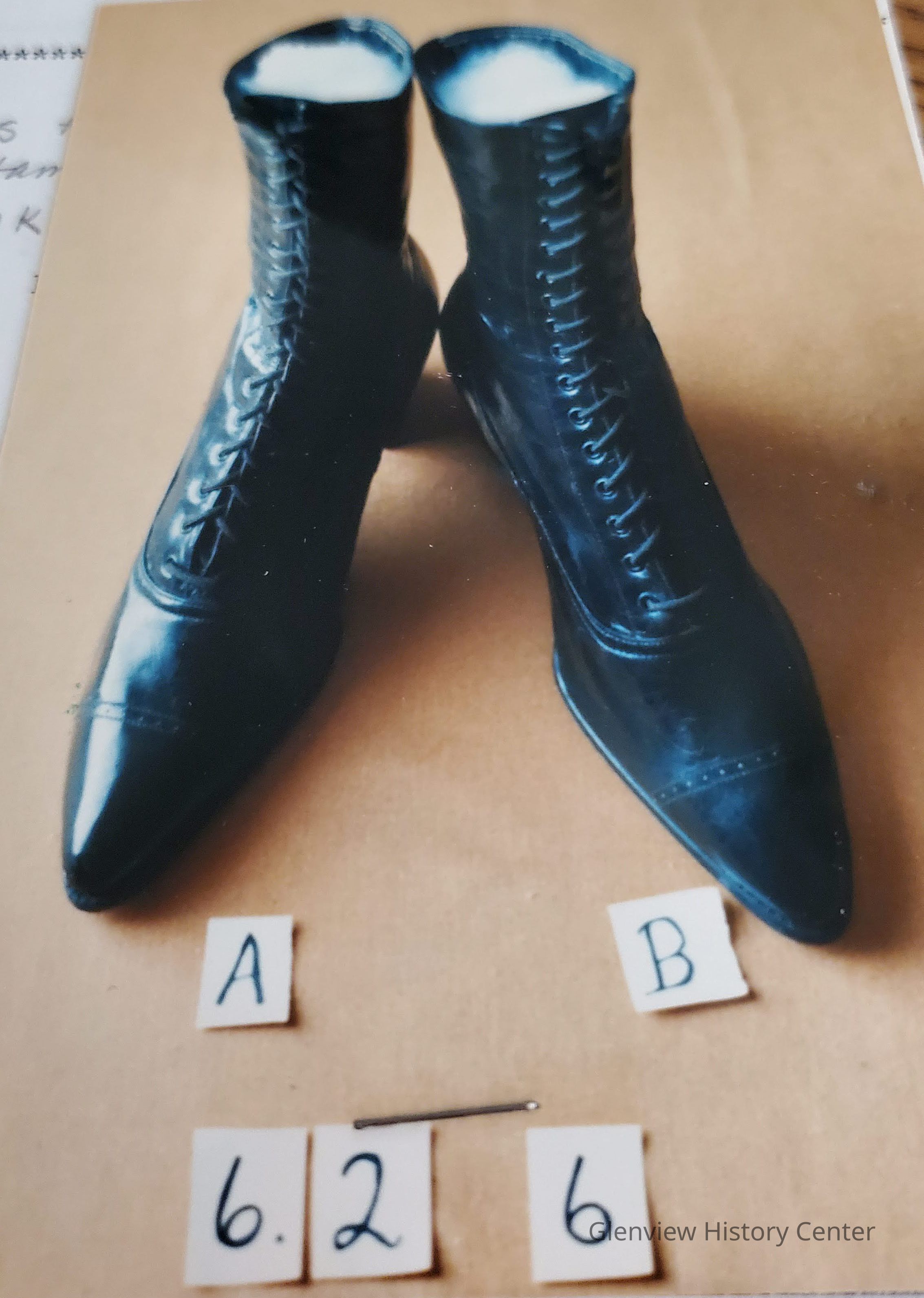Black leather high top, laced; pointed toes; 1" block heels.