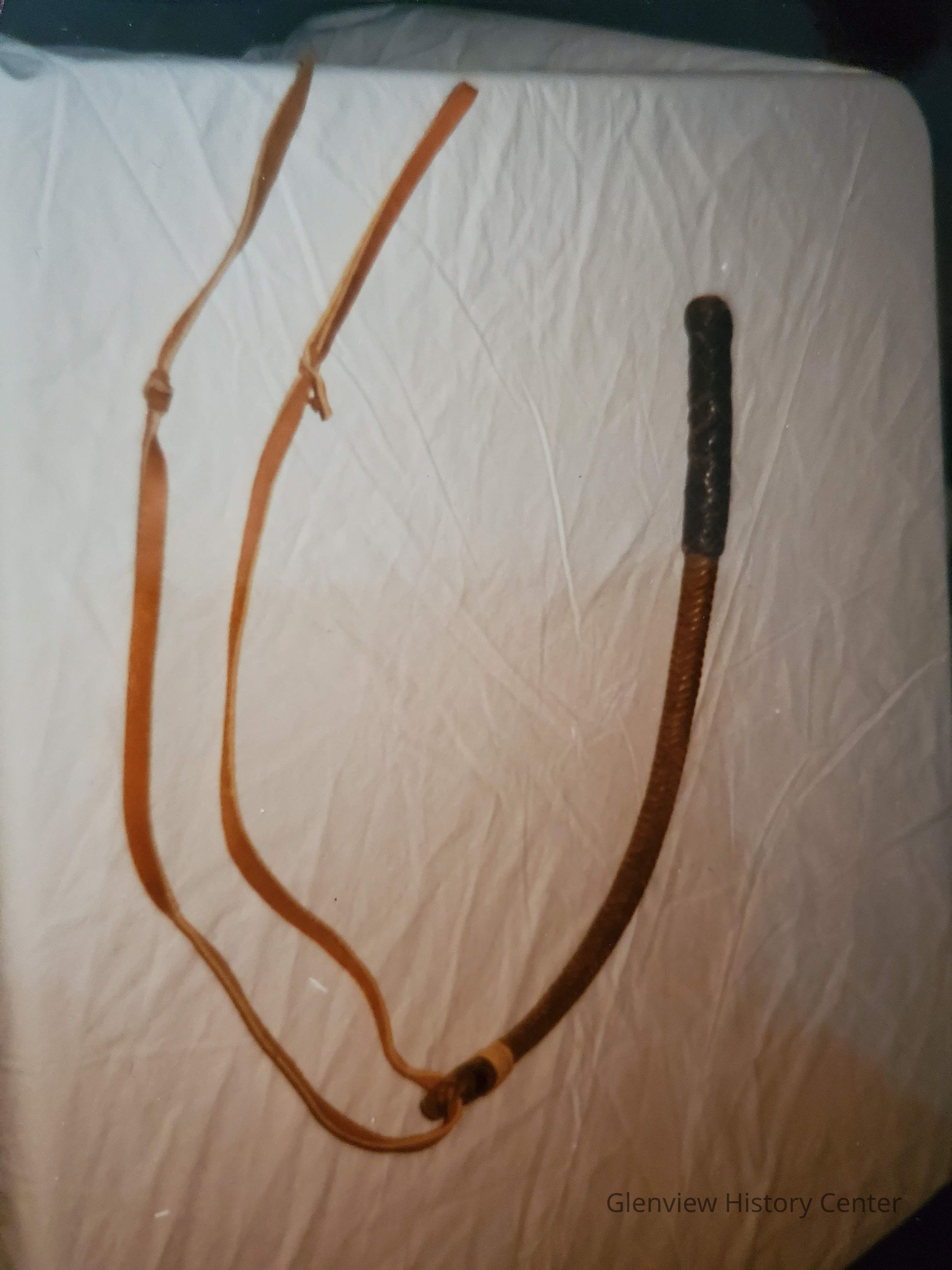 Leather quirt with thong used on Dakota Territory trip by Edwin J. Parker and later by Howard Poeherand.