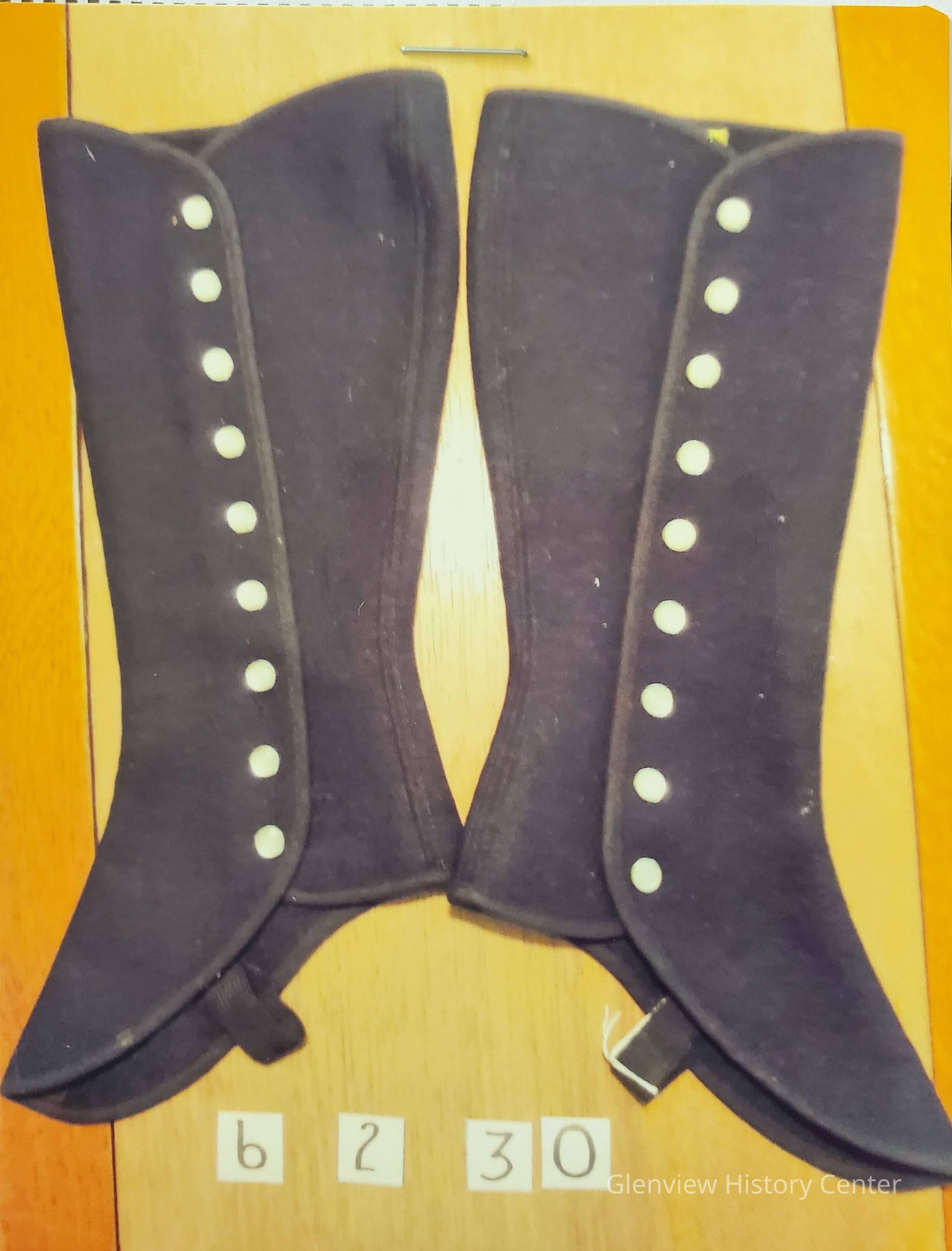 One pair black felt 9 button leggings.
