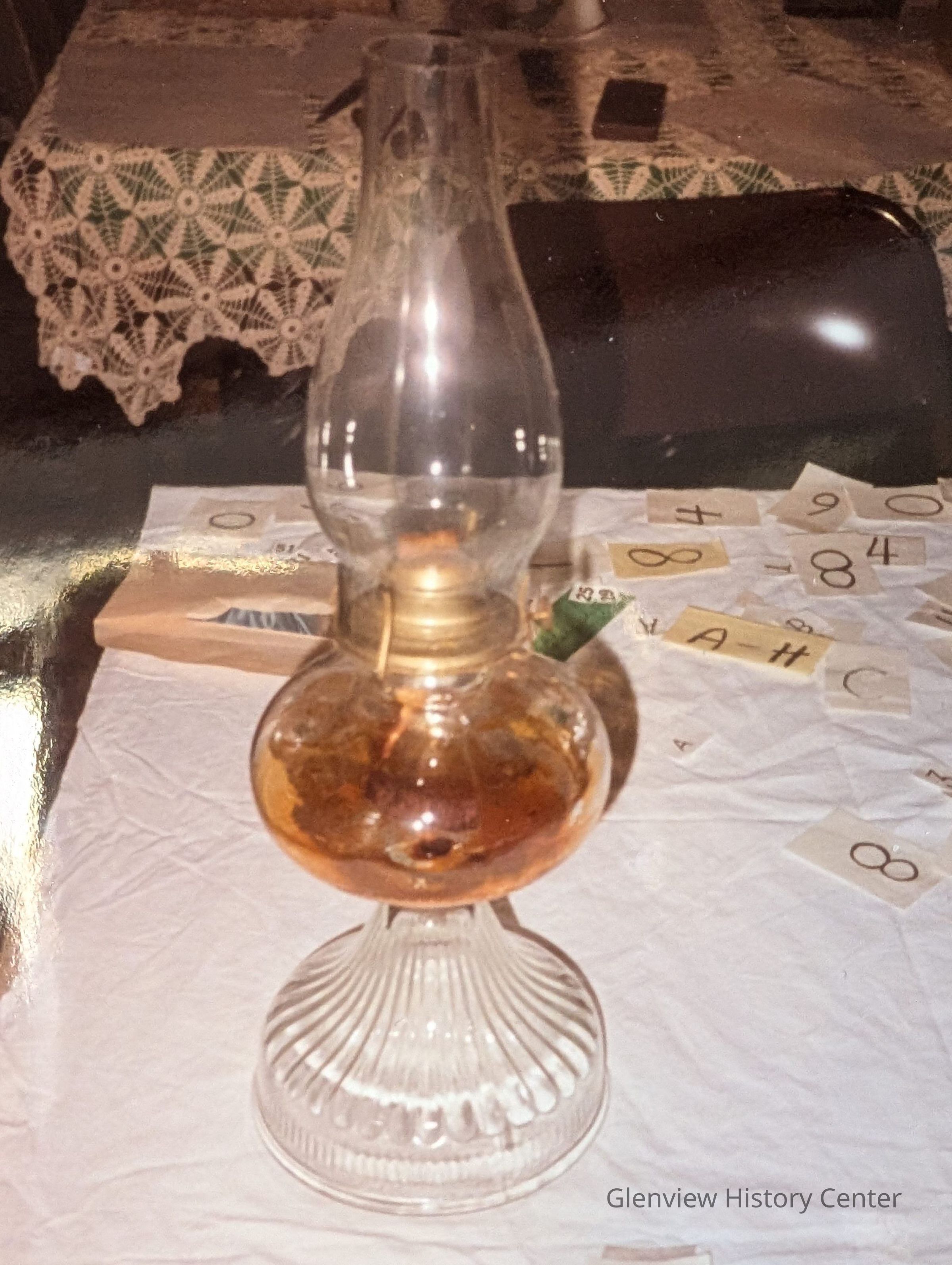 Kerosene Lamp common glass, tall chimney used by Henry S Maynard