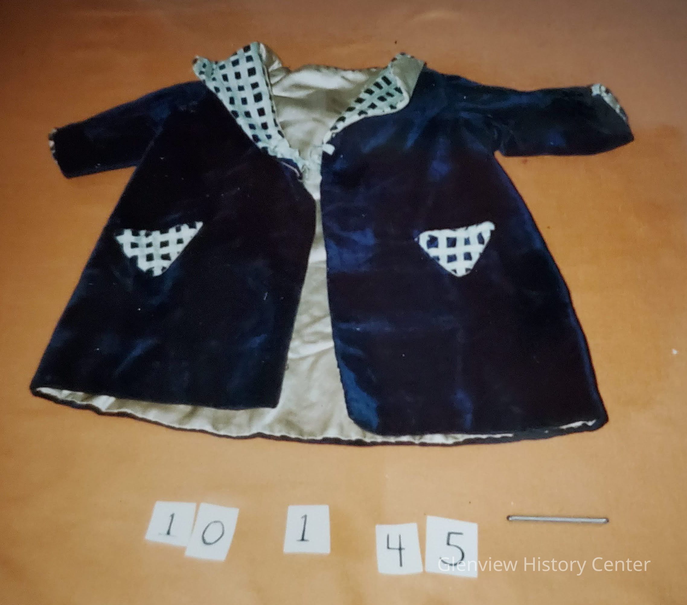 Navy Velvet Jacket - Lined Light Grey Satin - Checkered Satin Collar PocketsDescription