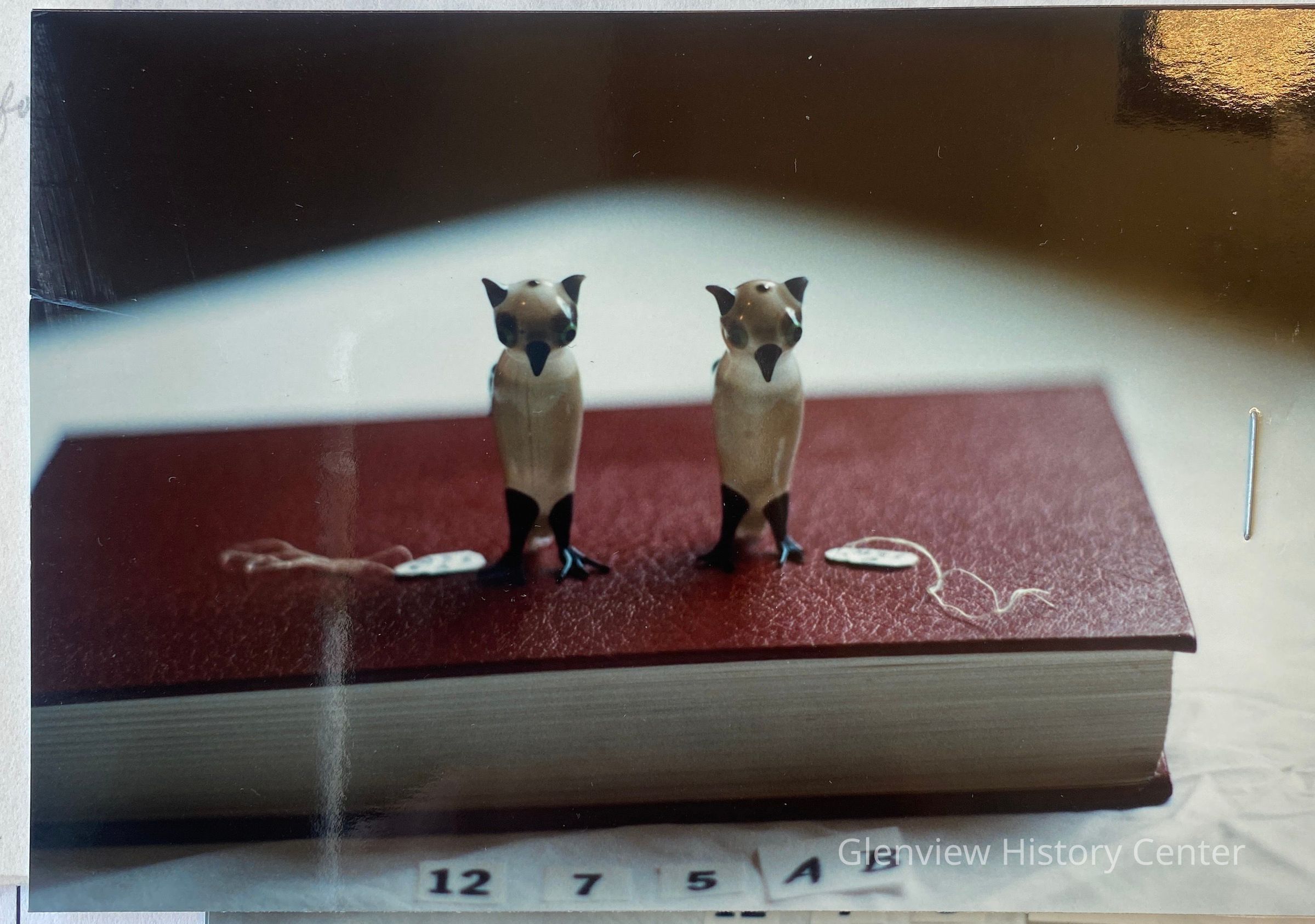 Hallow hand-blown and shaped glass figures of flightless birds, standing upright as a penguin but with head resembling an owlAcquisition