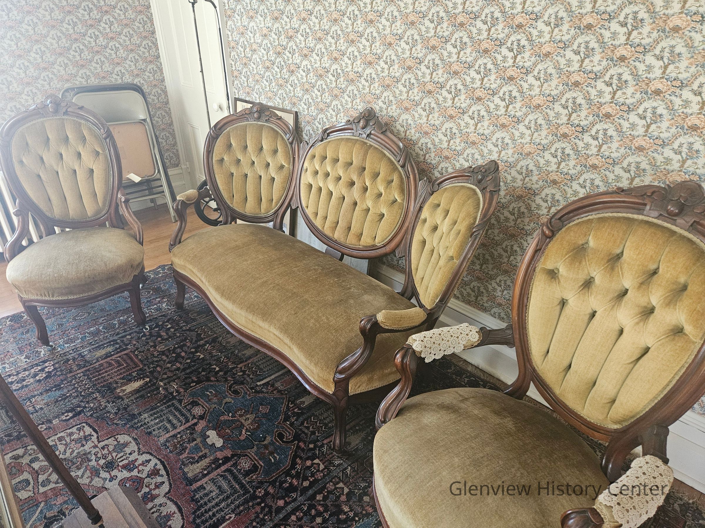 Three piece parlor set: Settee with three sections Armchair Side chair