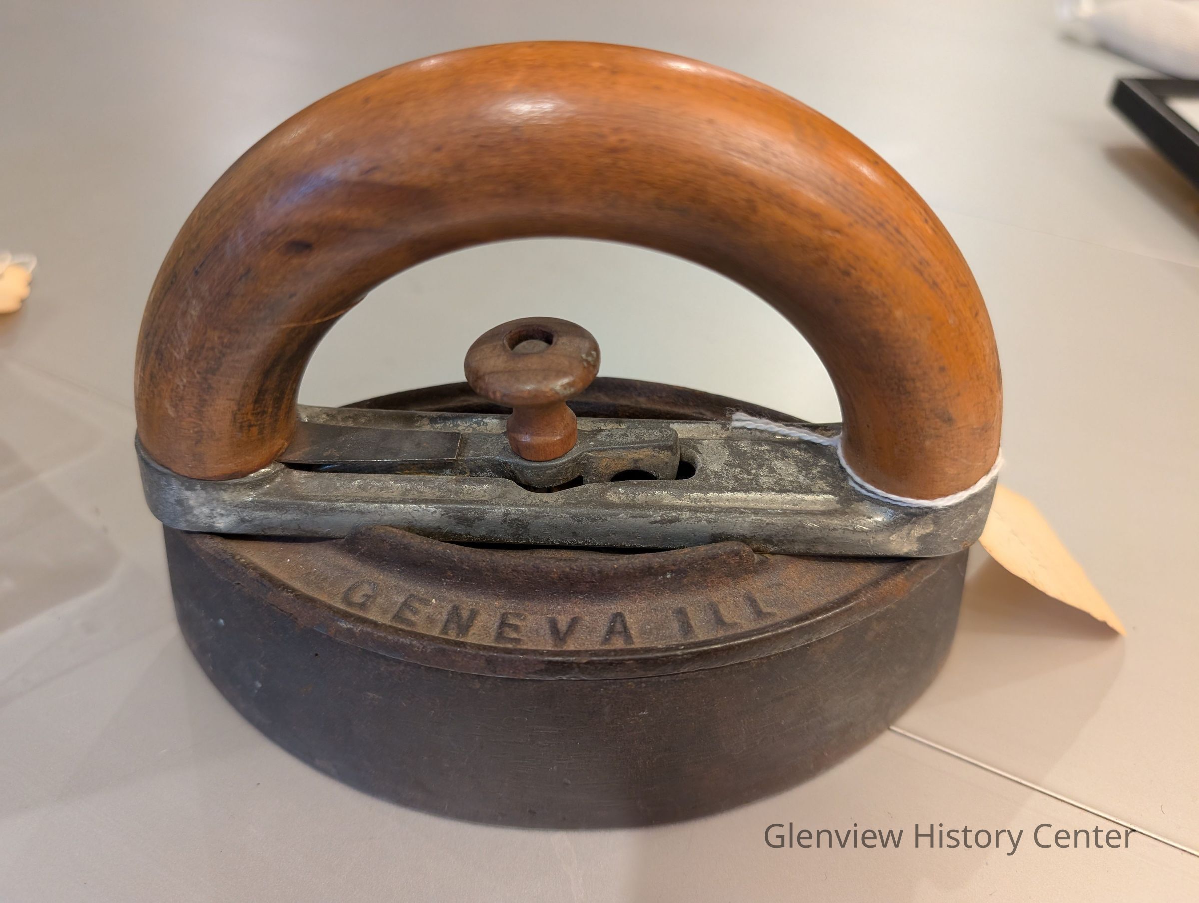 Pressing iron with removable handle made in Geneva, IL