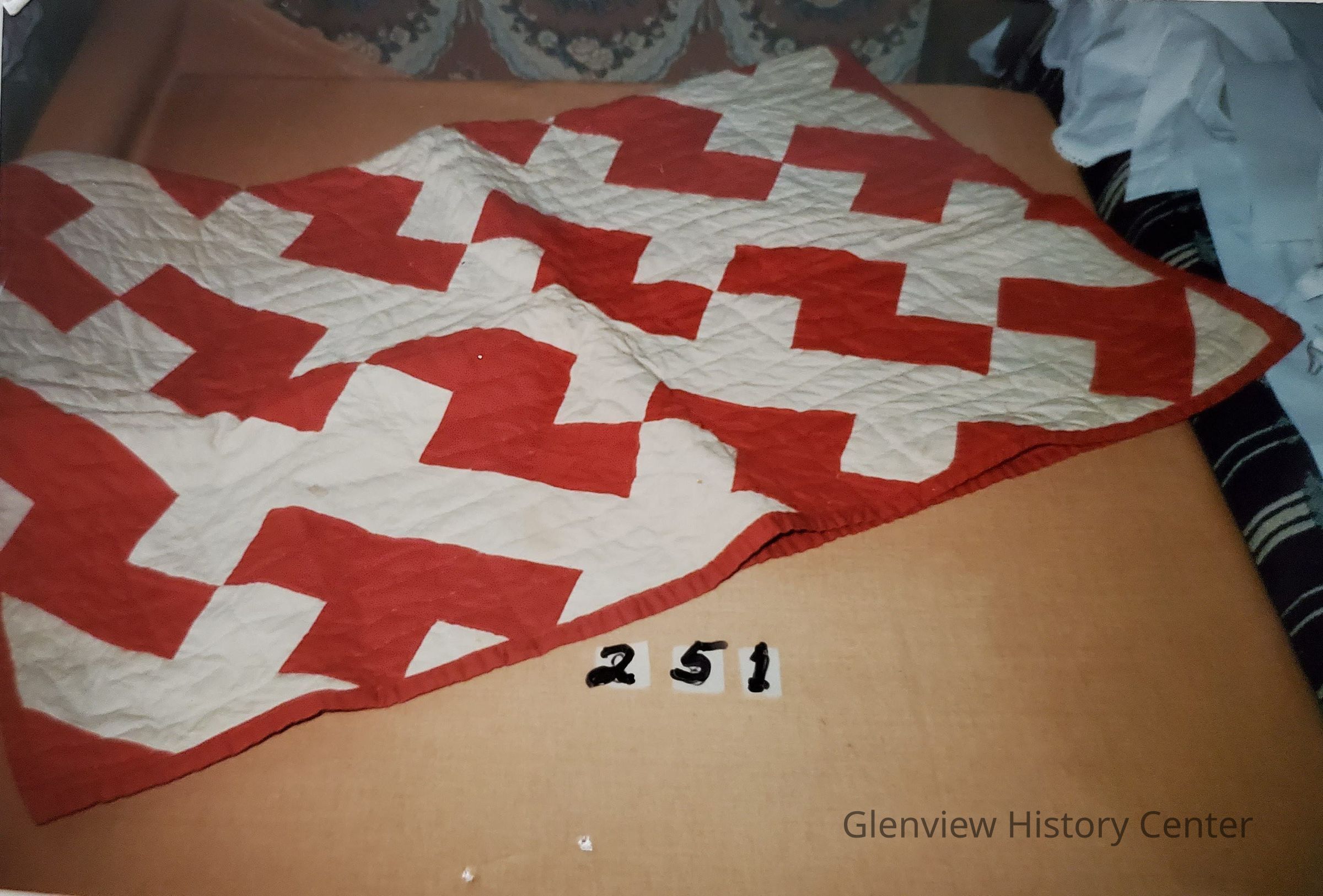 Children's quilt, red and white zigzag design. Looks handmade quilting and machine stitched.