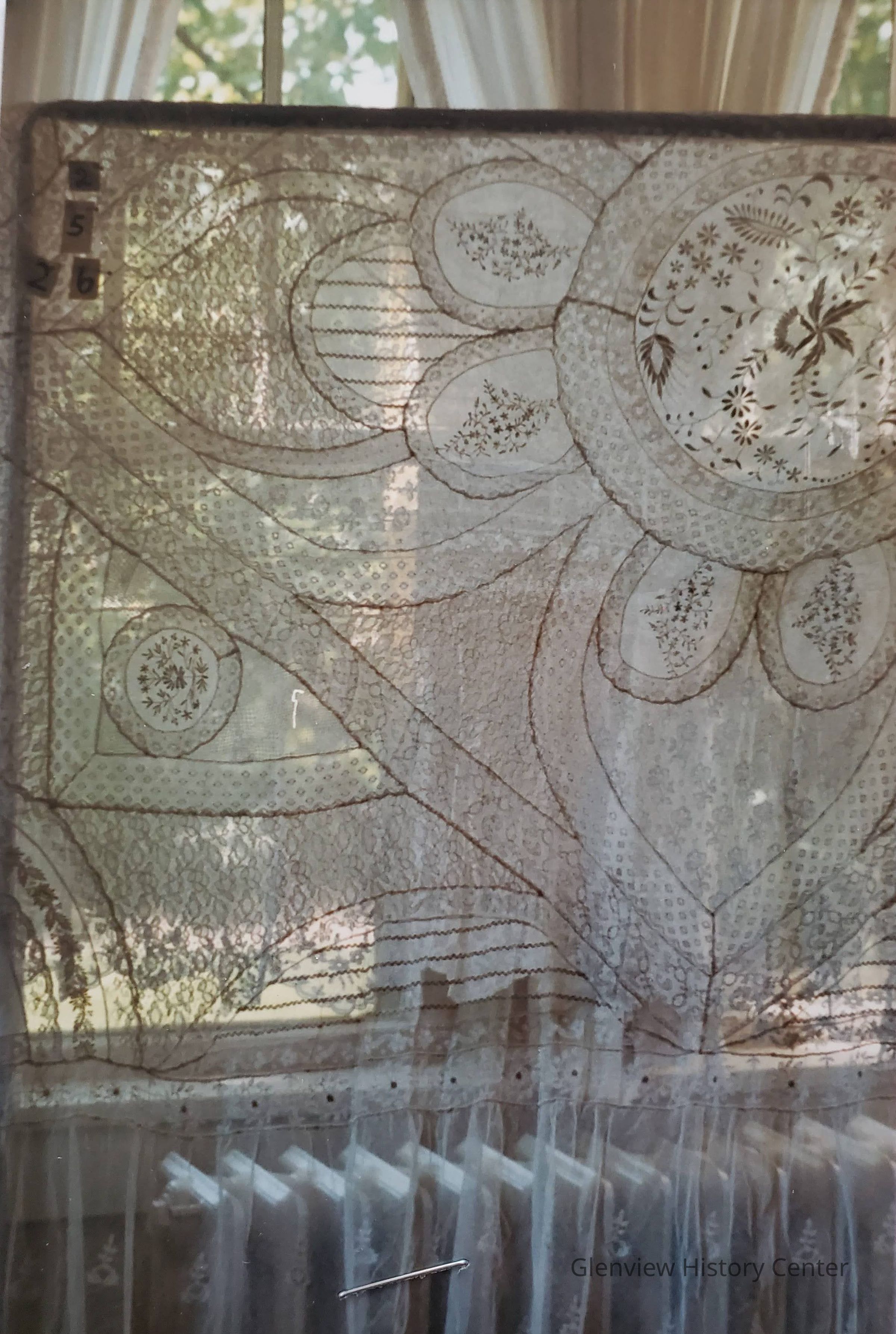 Sunday bedspread with vining rose pattern with lace insert; 14" ruffle.