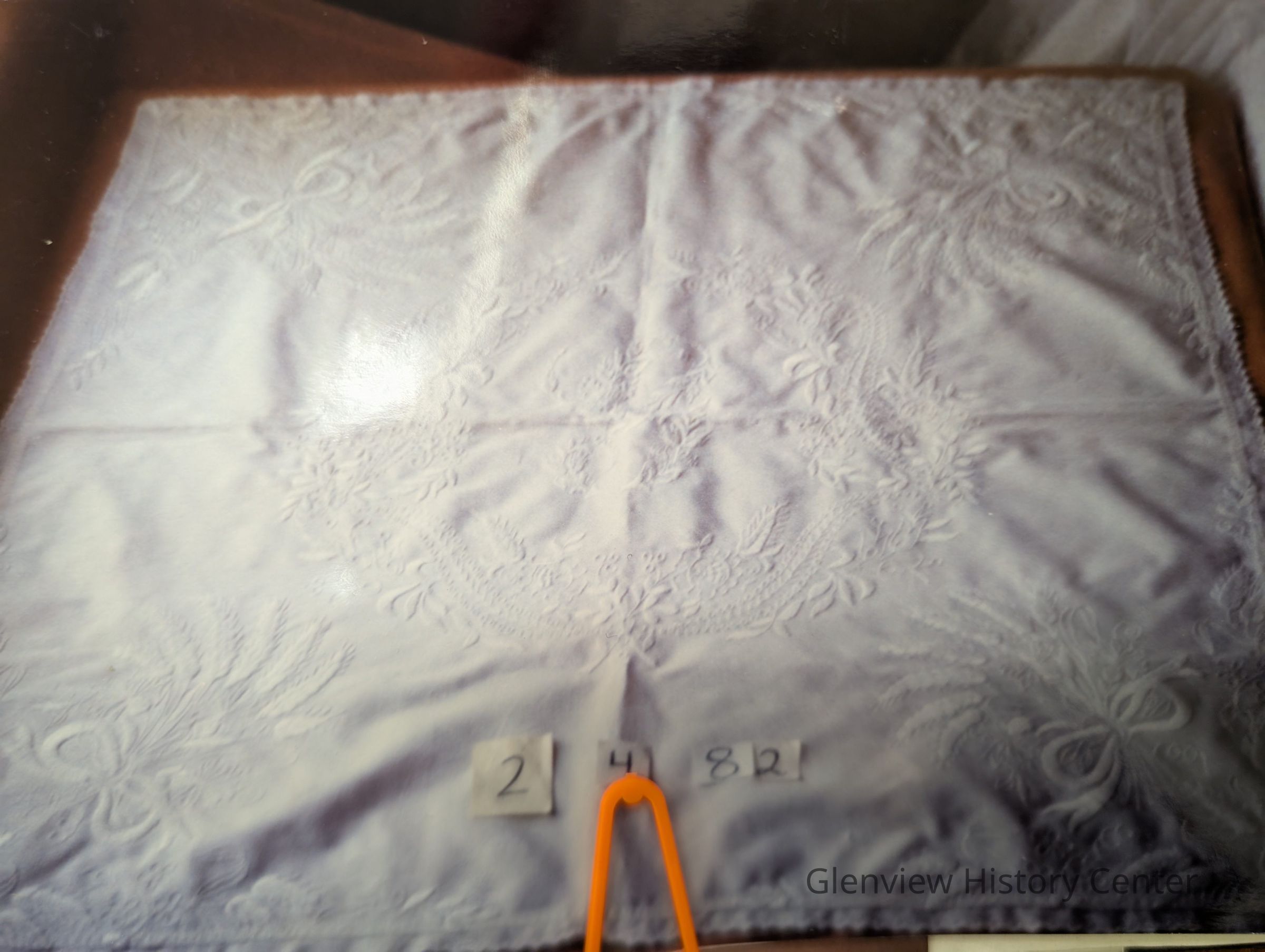 square linen tablecloth (24") scalloped edge eyelet and embroidery