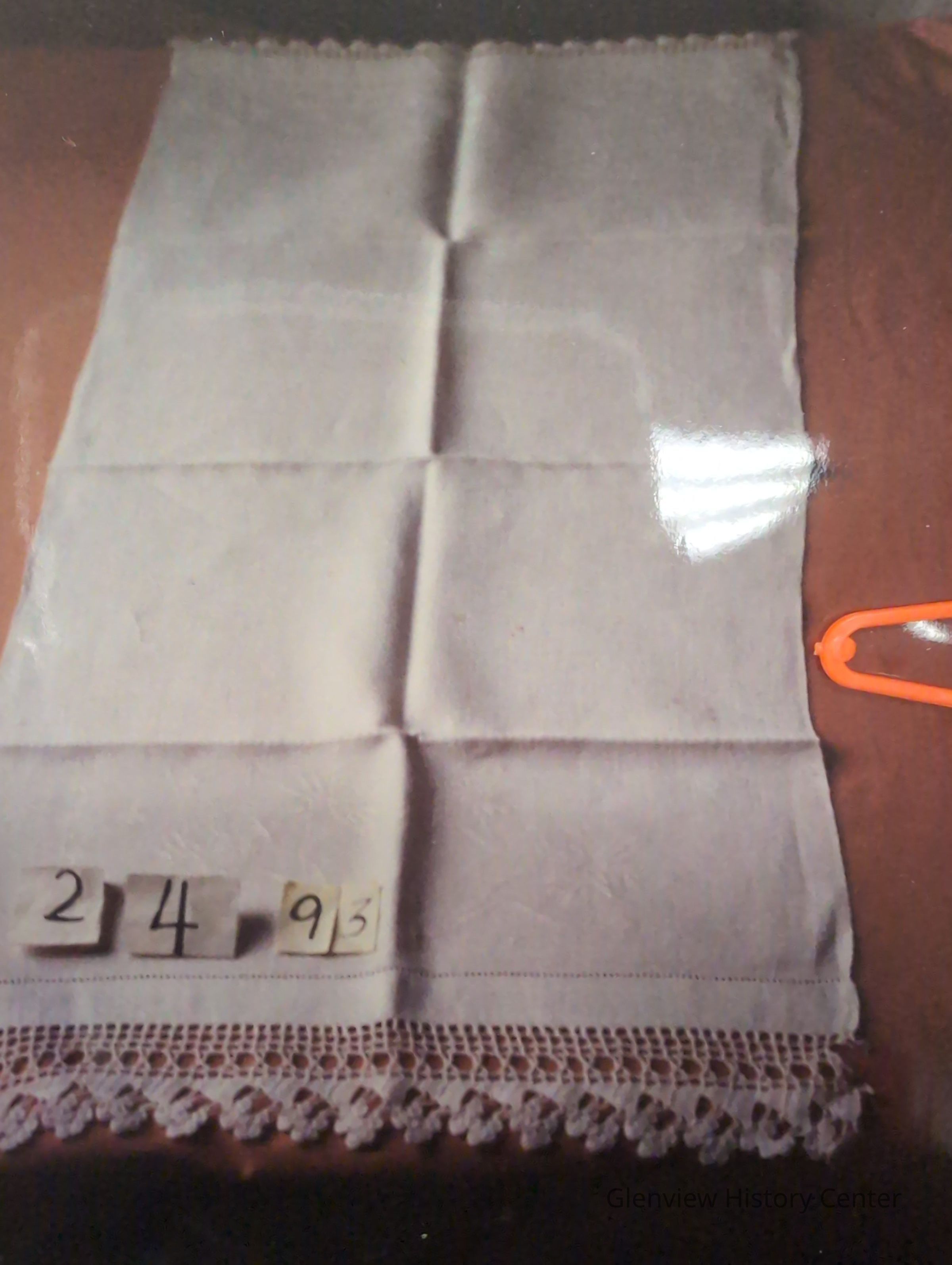 creme colored linen towel (41"x 22") hemstitched at both ends fleur de leis pattern
