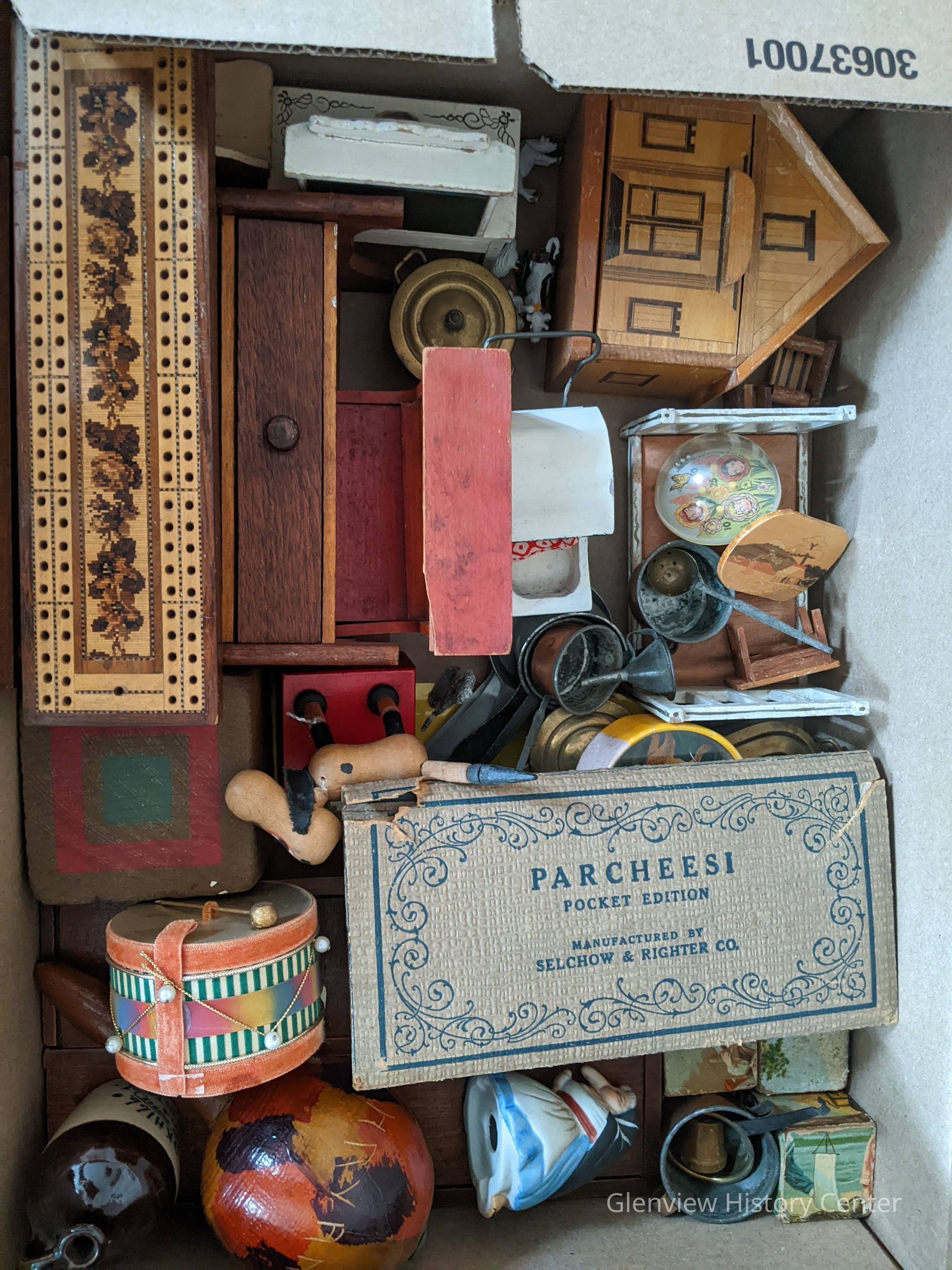 Toys from the Toy Room. Some fragile items. Lots of small toys.