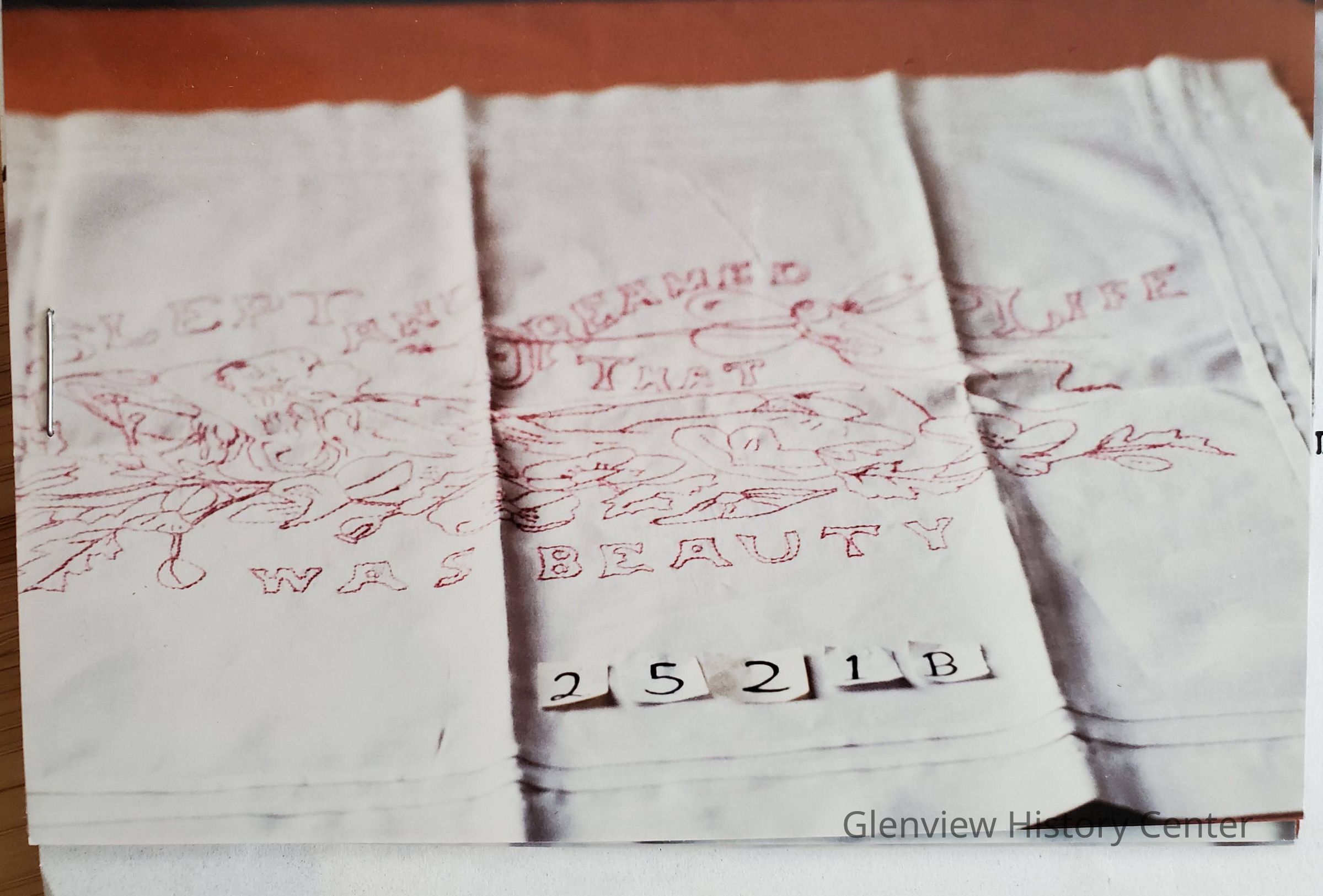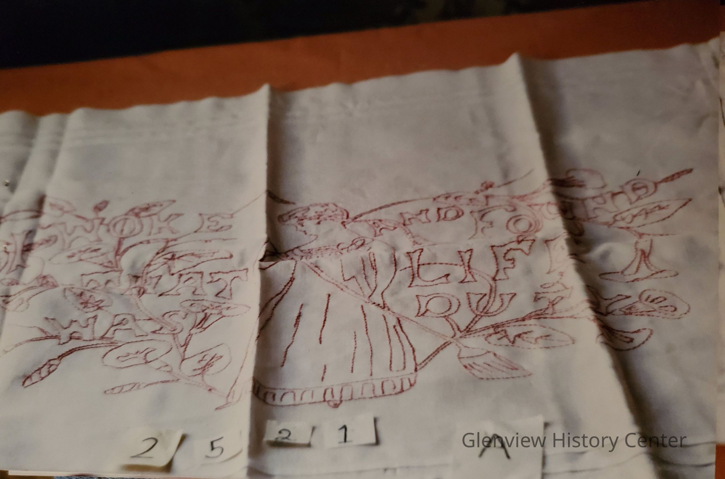 Two square cotton pillow shams (31" X 27") with hand embroidery - red thread picture and lettering double tucks on all 4 sides 2" inside hem: "I slept and dreamed this life was beauty". Picture of angels, flowers and leaves "I woke and found that life was duty. Picture of lady with broom.