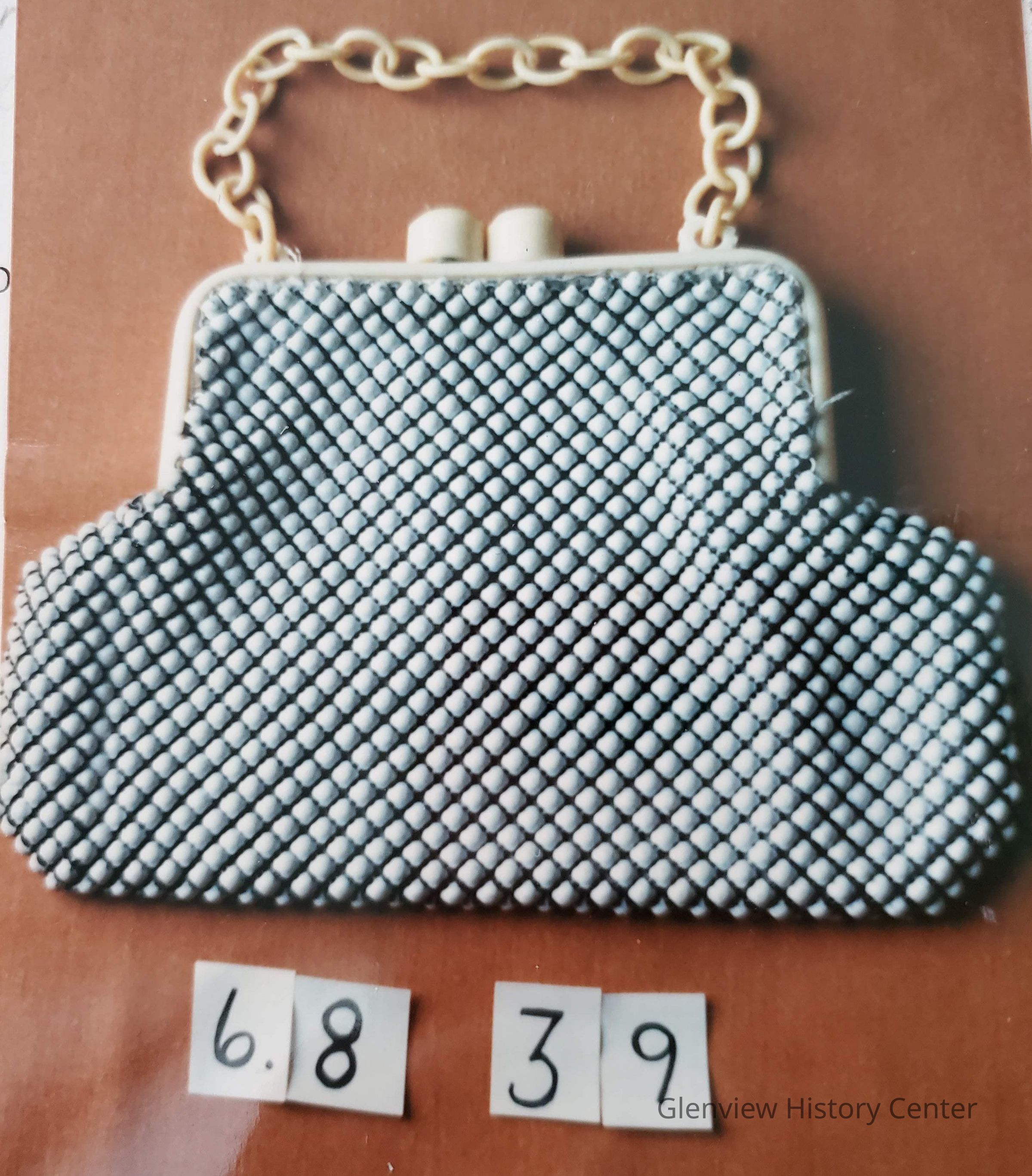 White Metal Mesh Bag with Celluloid Chain Handle and Frame