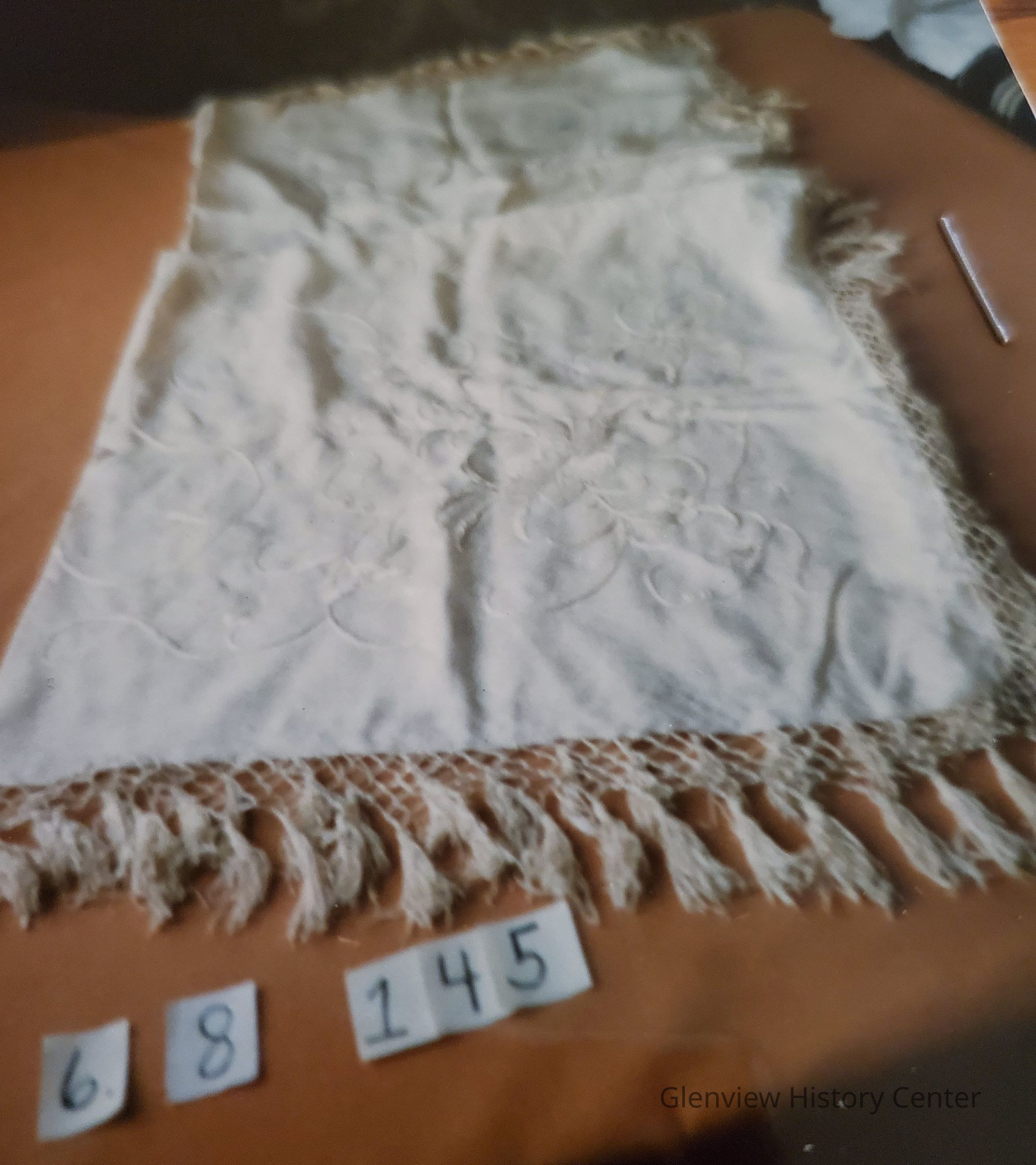 One ecru silk square shawl with embroidered floral design lace and fringe trim 3" wide.