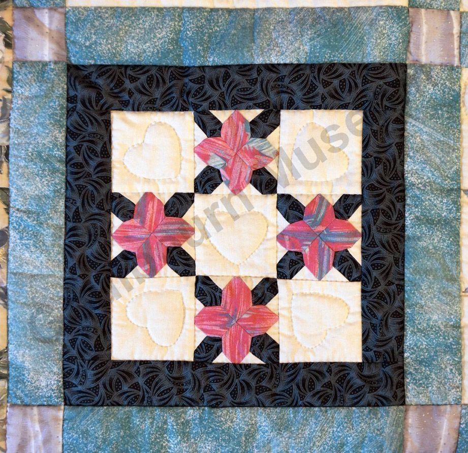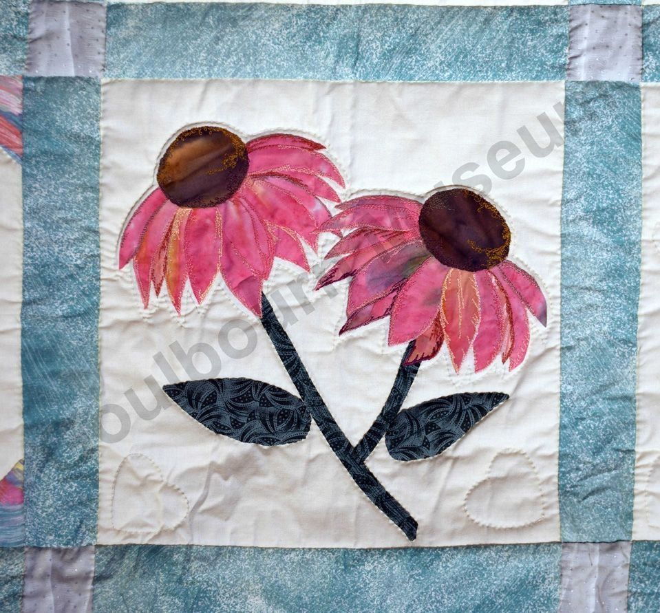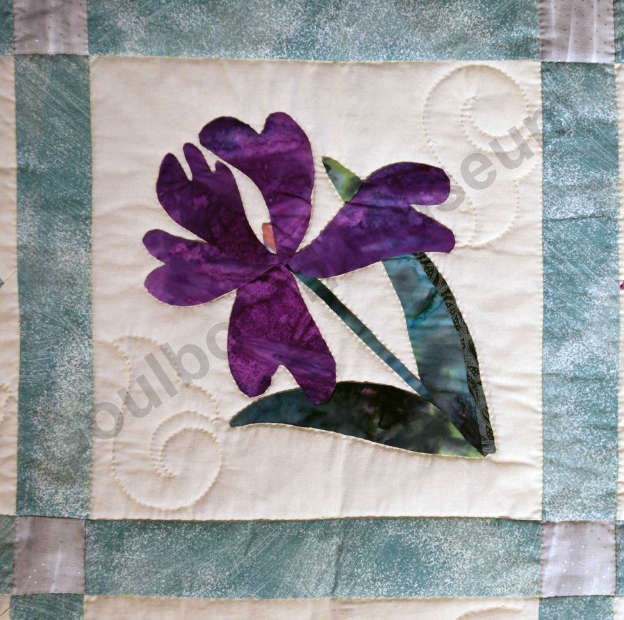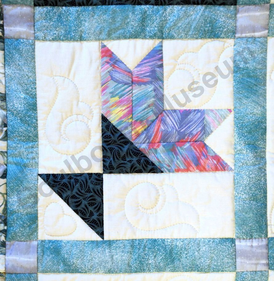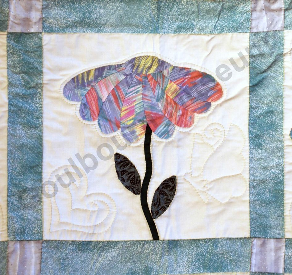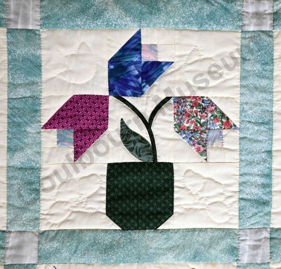 1st challenge quilt made by the guild in 1999/2000. Each block made by different members and hand quilled by the group.Collection