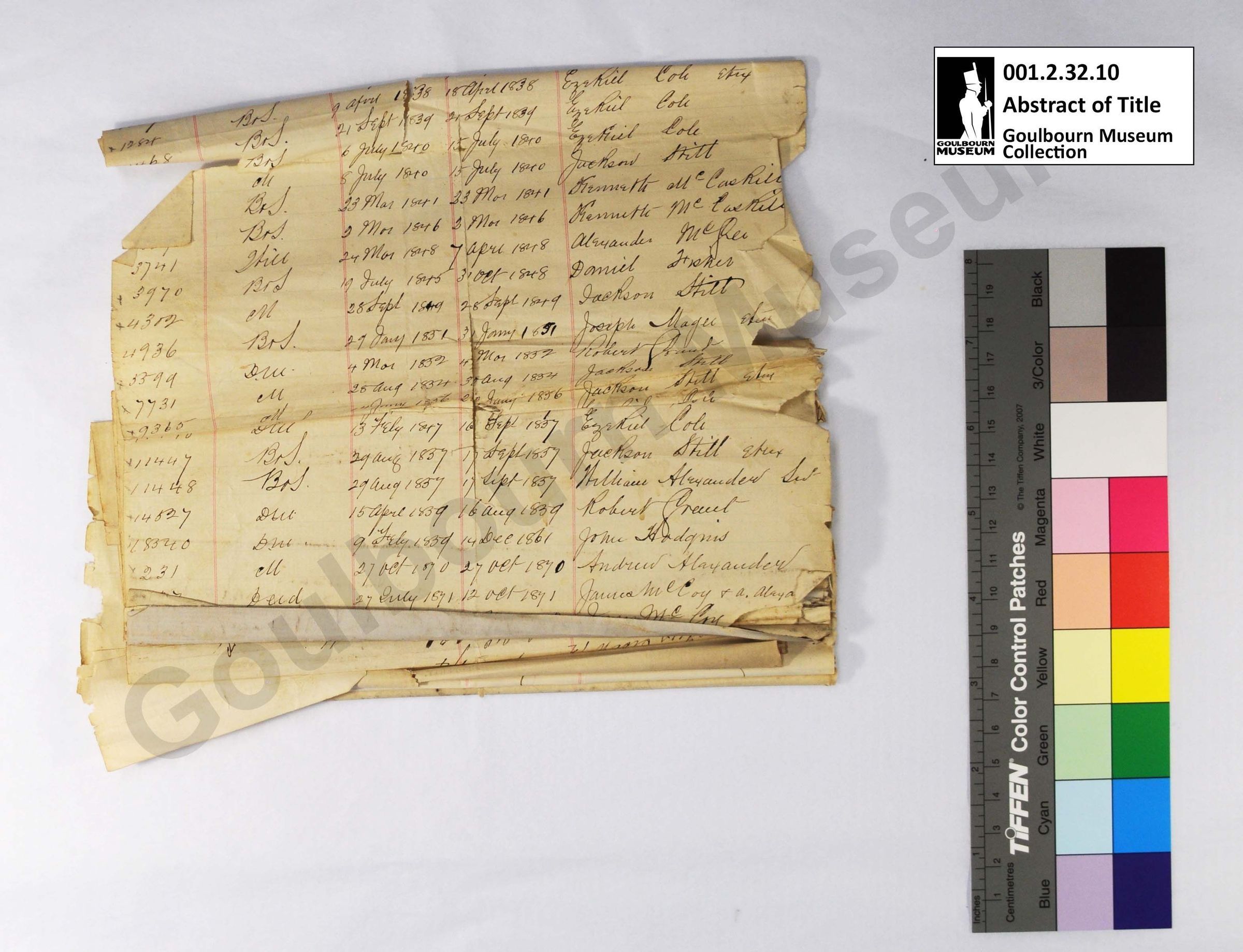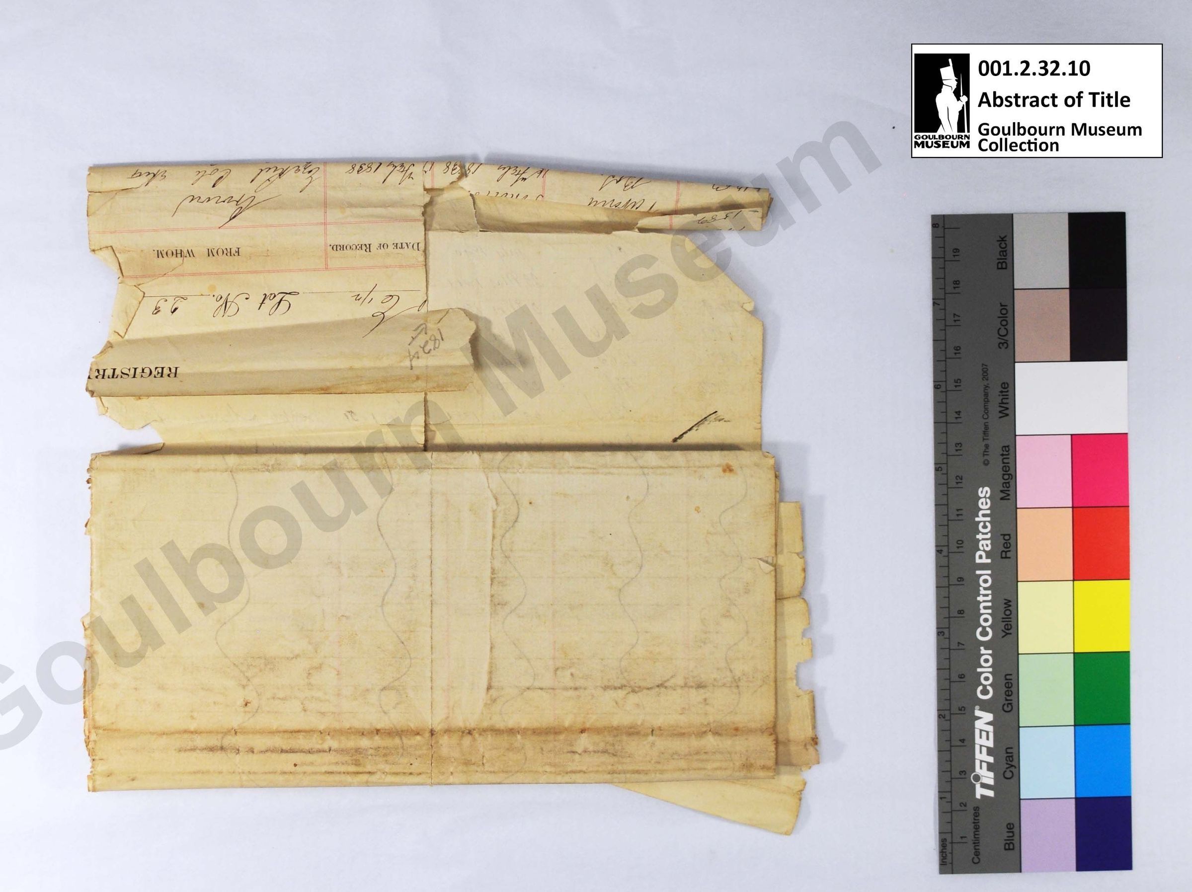 This object is highly significant as there are a number of prominent names which appear such as Jackson Stitt and William Alexander. Furthermore, this object is significant as it documents historic land ownership in the Goulbourn area.Collection