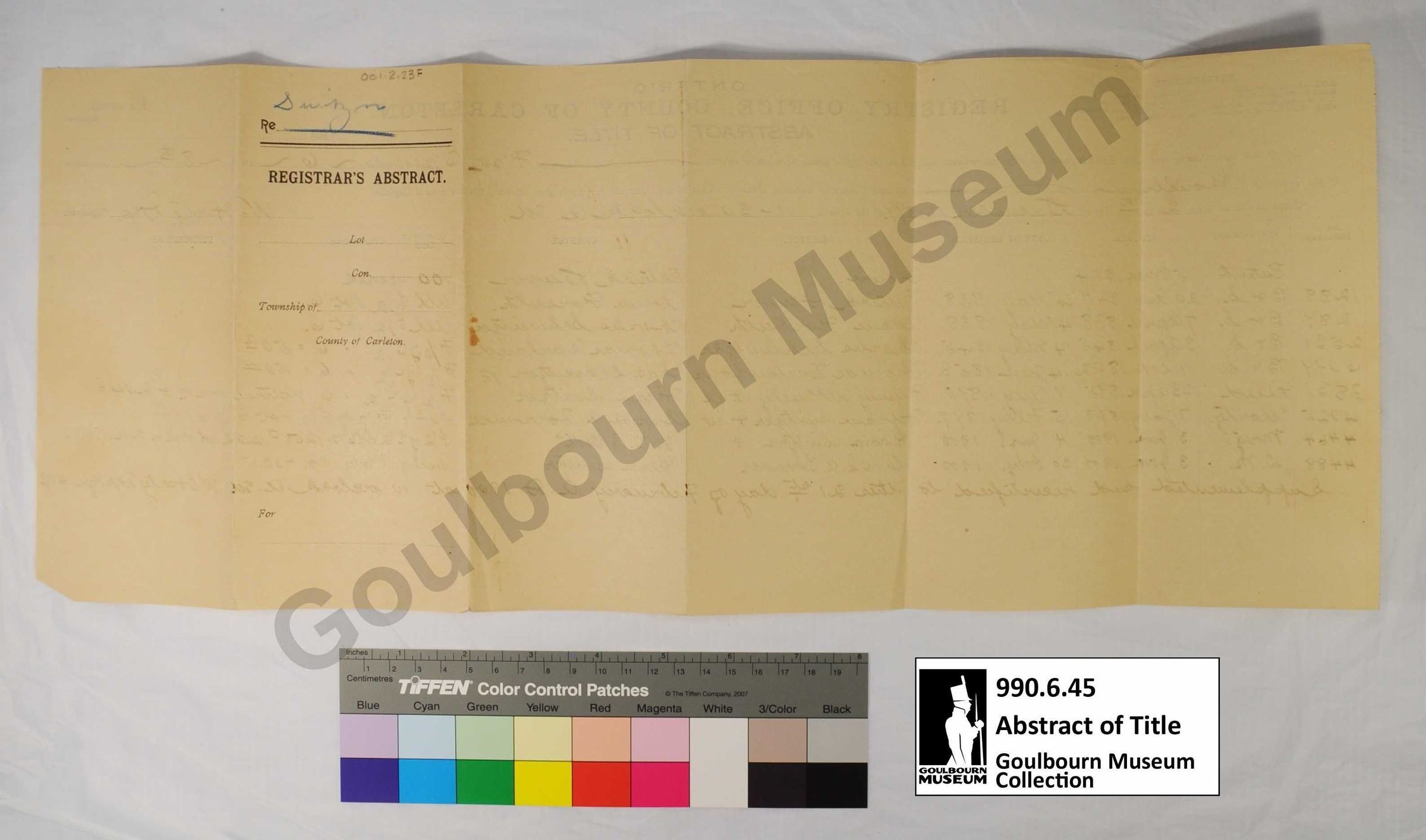 This object is important as it provides information about historical land ownership in Goulbourn.Made/Created