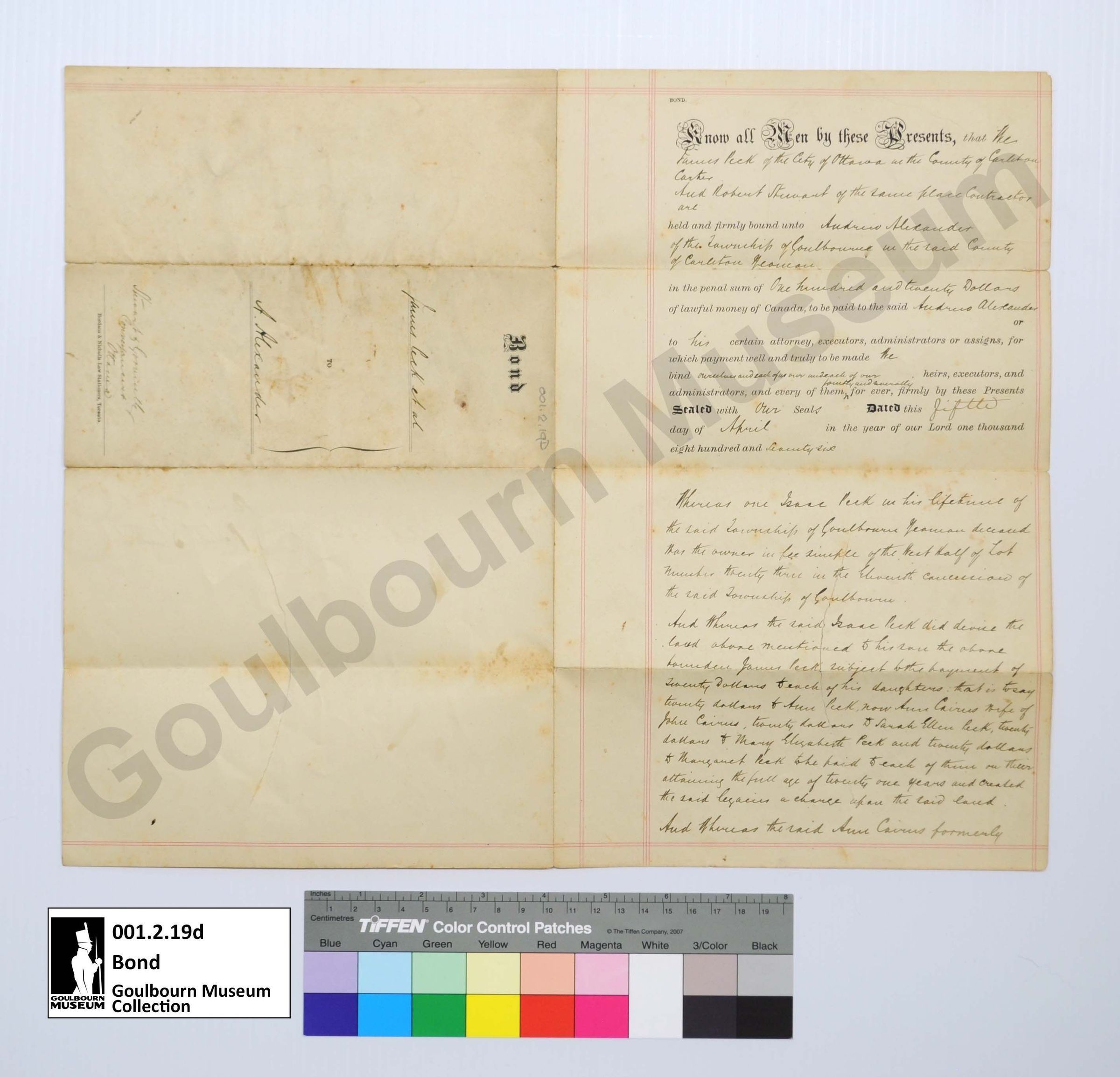 Bond, Legal: James Peck et al, A. Alexander Stewart,1876Entry/Object ID