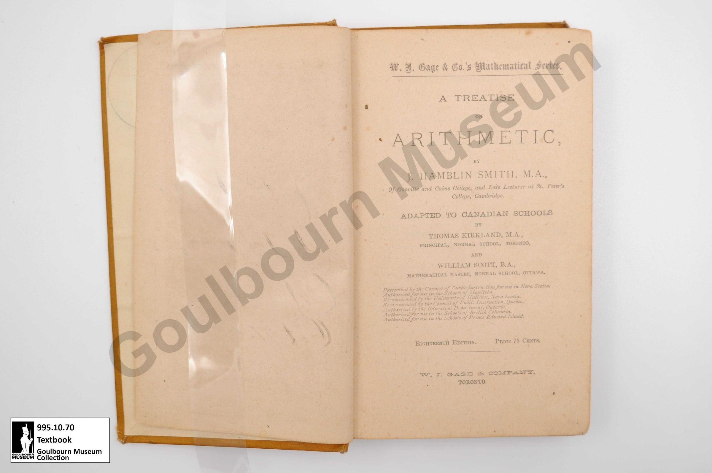 Book titled "Hamblin Smith's Arithmetic." Published in 1877 by Kirkland & Scott Publishing Co.