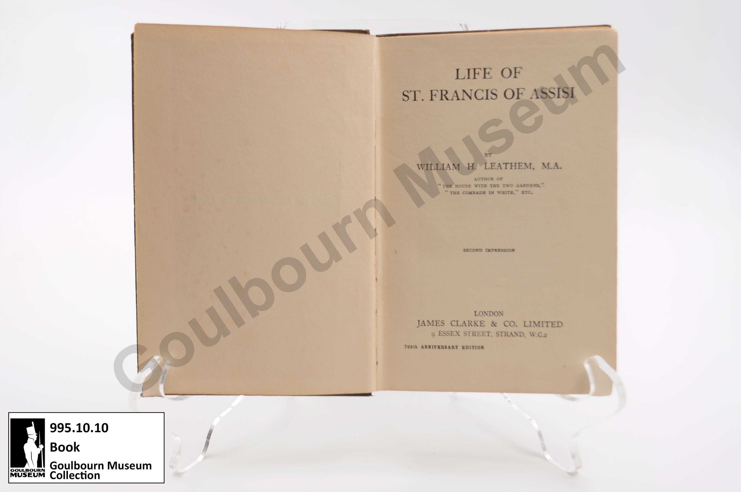 Biography of St. Francis Assisi, titled "Life of St. Francis of Assisi." Written by B.H. Leathem. Published in 1926.