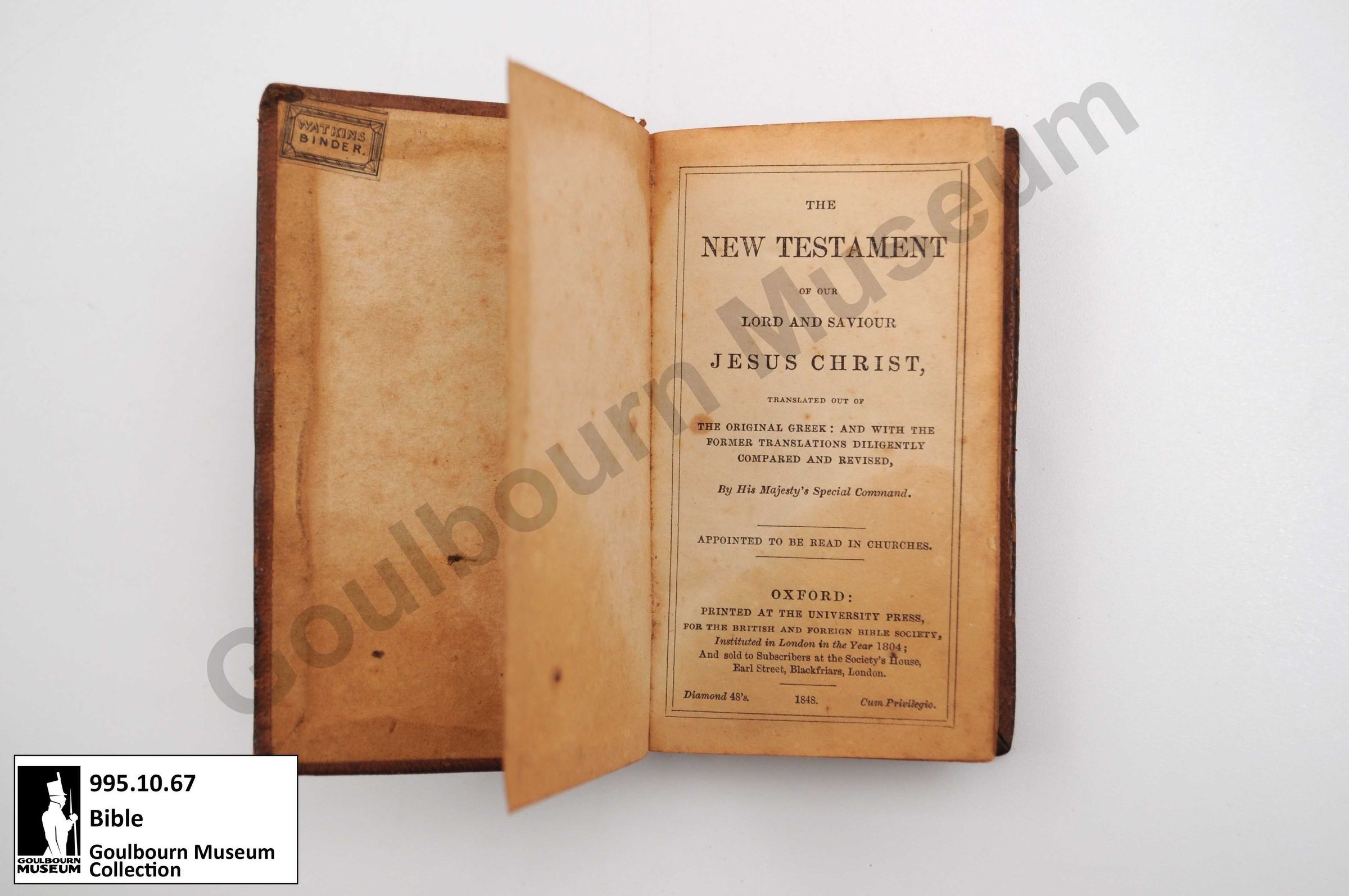 Book titled "The New Testament of Our Lord and Saviour Jesus Christ." Published in 1848.