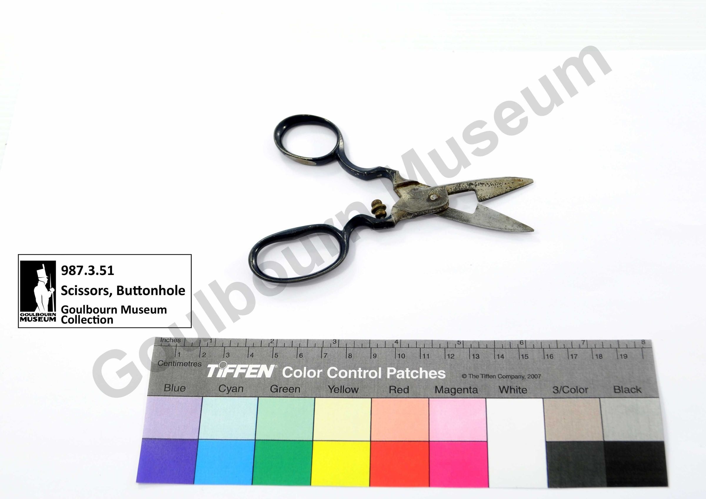 The 1840 edition of The Workwoman’s Guide by a Lady suggests you “cut the button-hole with a chisel (or the proper scissors made for that purpose)... the same size as the width across the button.” Then a needle and thread were used to stitch around the buttonhole after the fabric was cut.