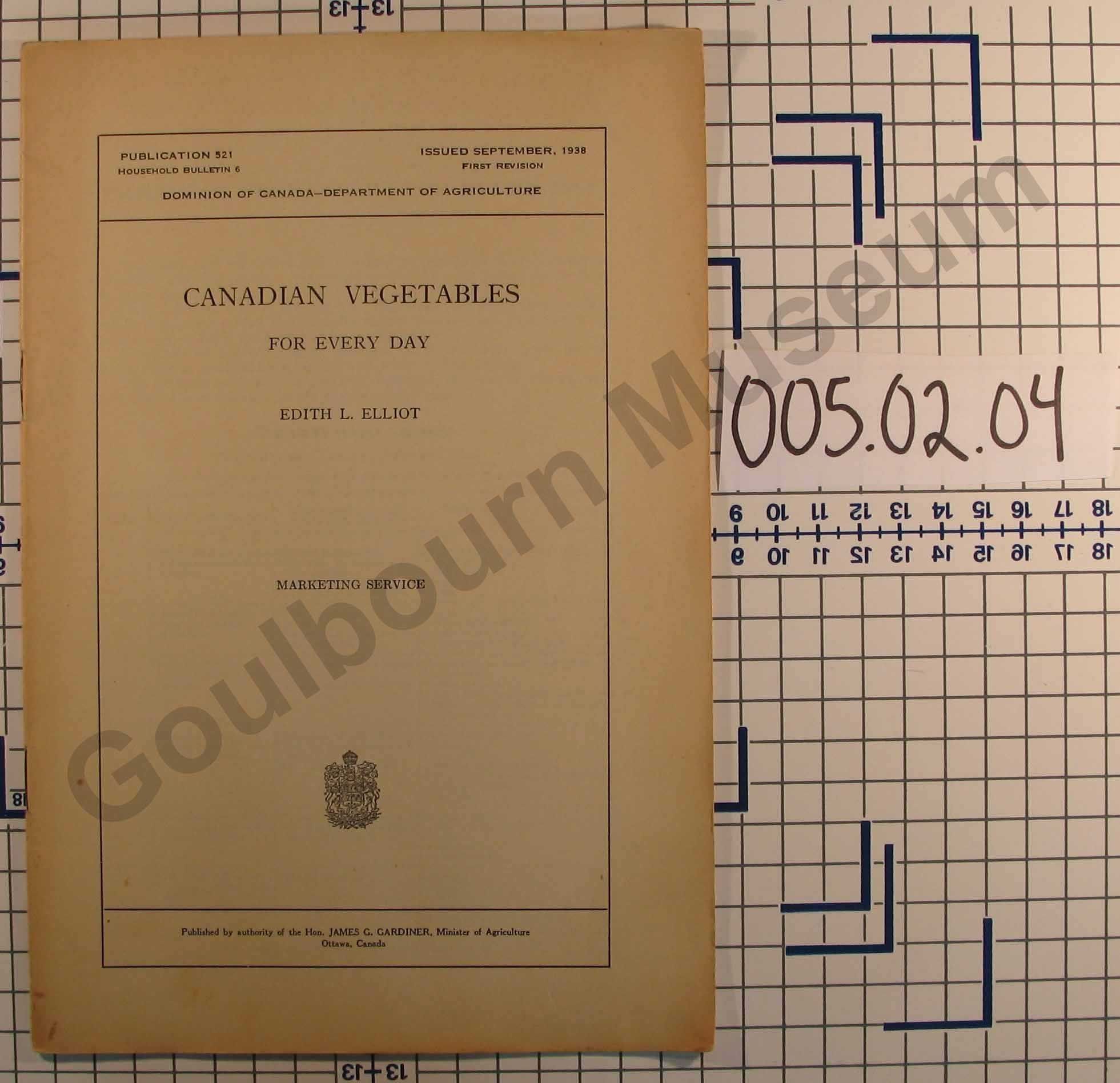 Canadian Department of Agriculture Household Bulletin: Canadian Vegetables for Every DayEntry/Object ID
