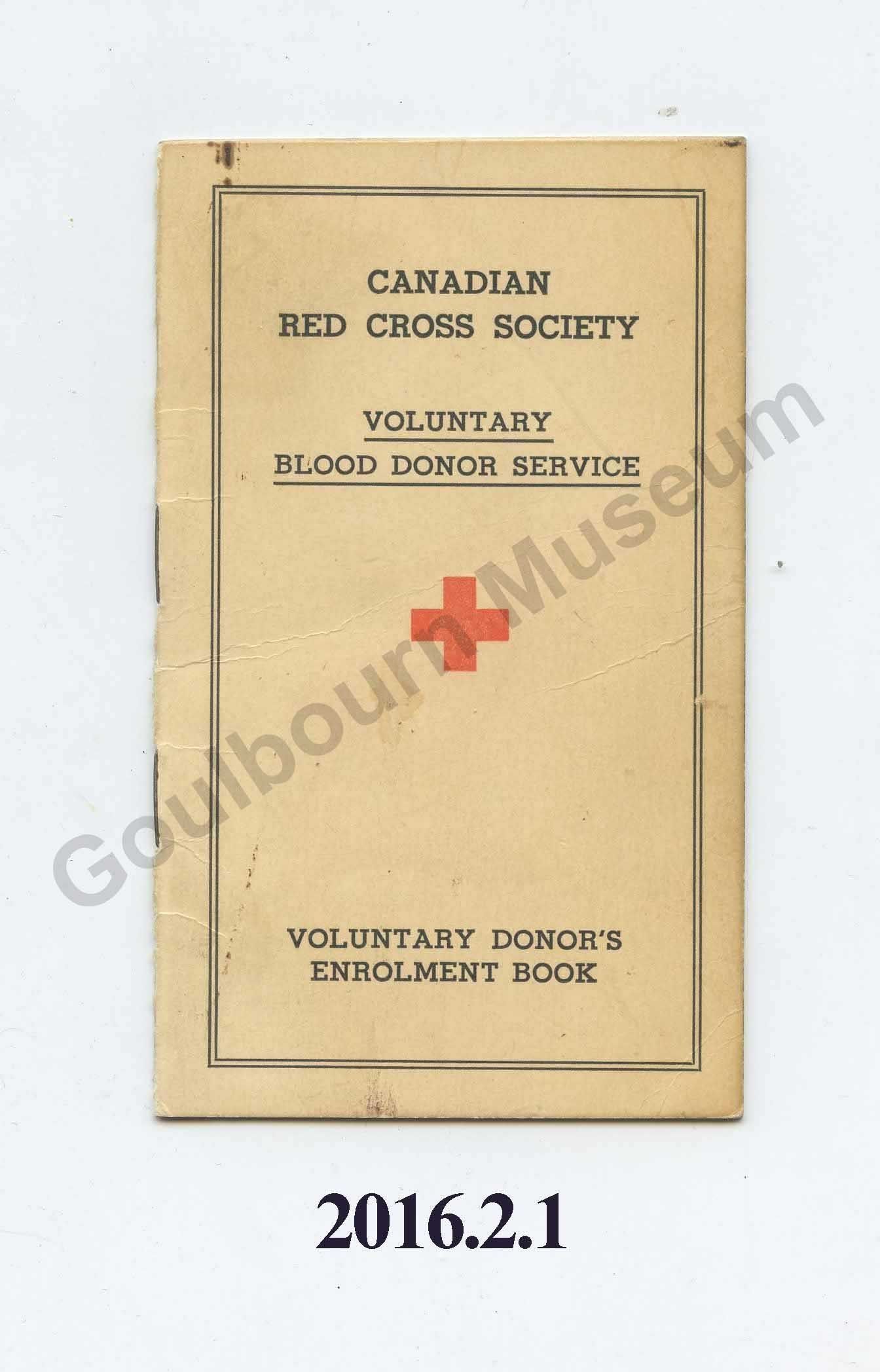 Canadian Red Cross Voluntary Blood Donor Service enrolment bookEntry/Object ID
