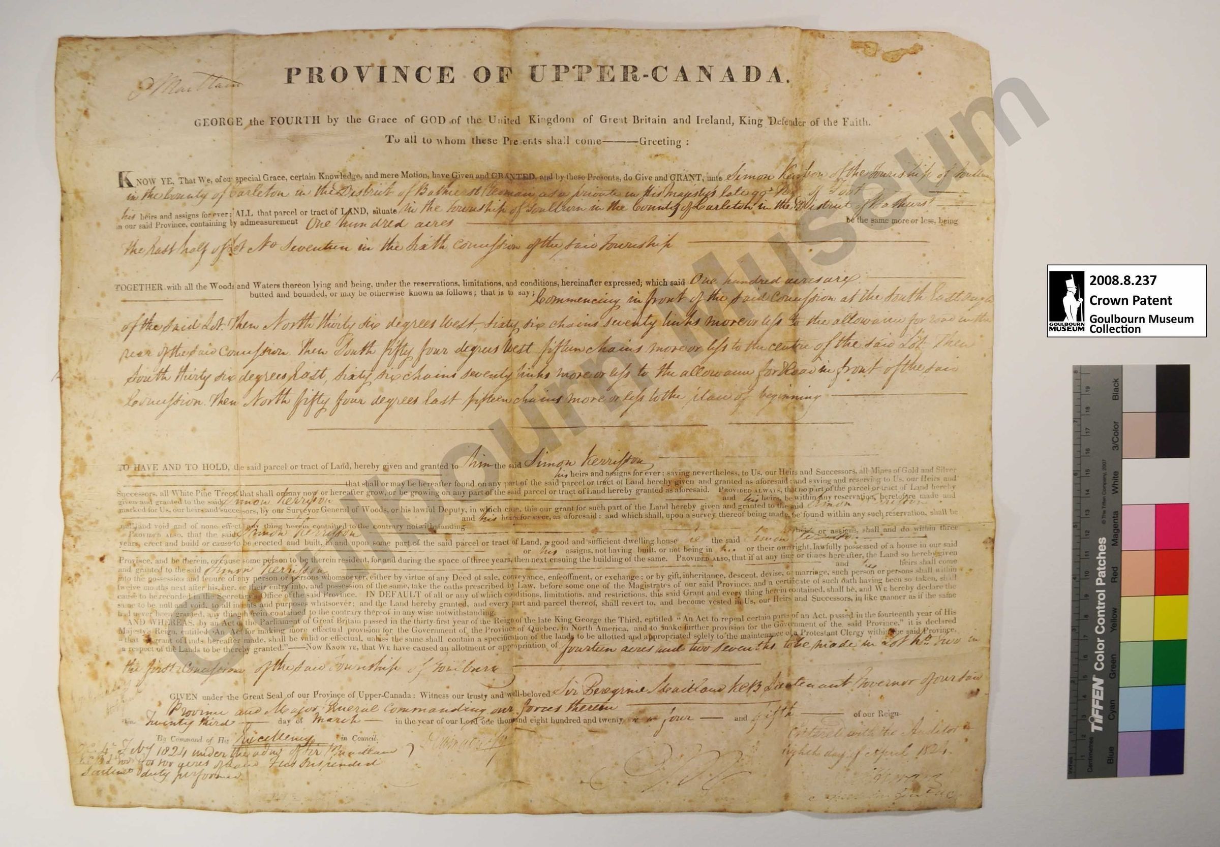Crown Patent: Simon Kerrison E1/2 Lot 17, Concession 6, 1824Entry/Object ID