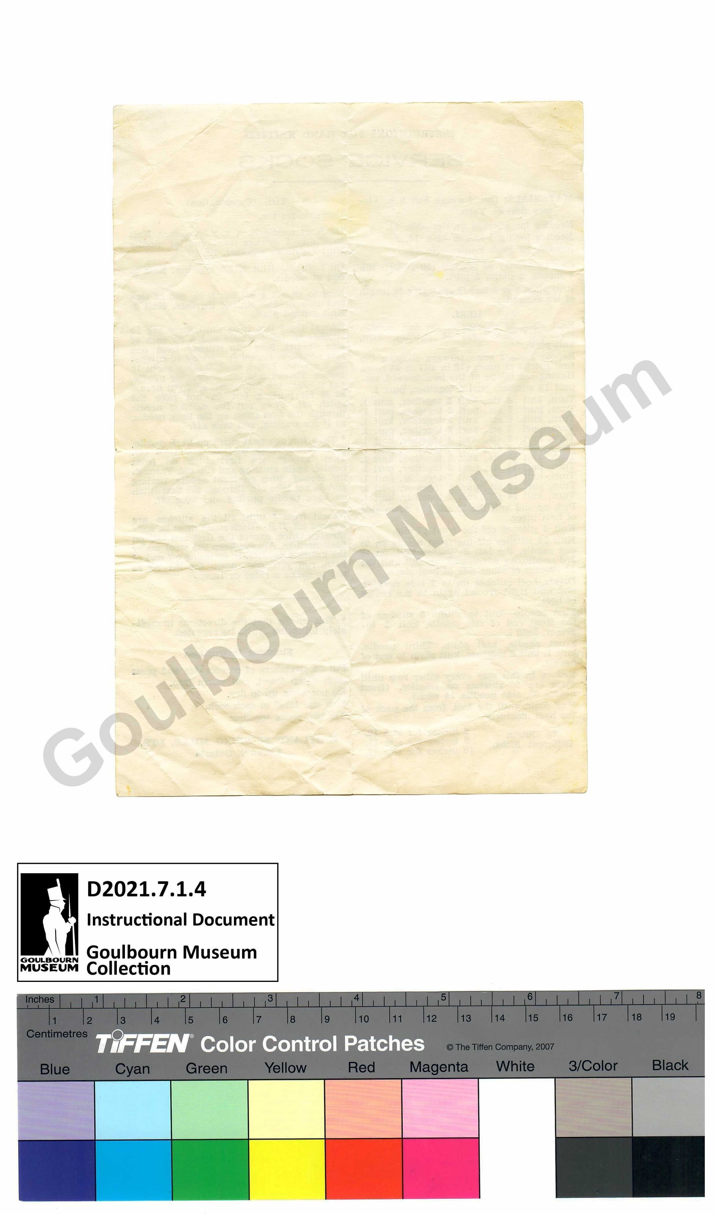 Document: Instructions for Hand Knitted Service SocksEntry/Object ID